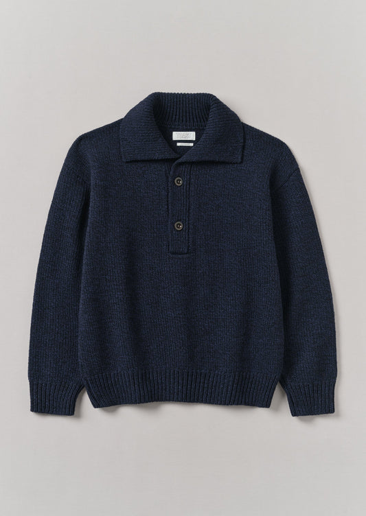 Maglione in lana con mezza patta | Blu navy melange