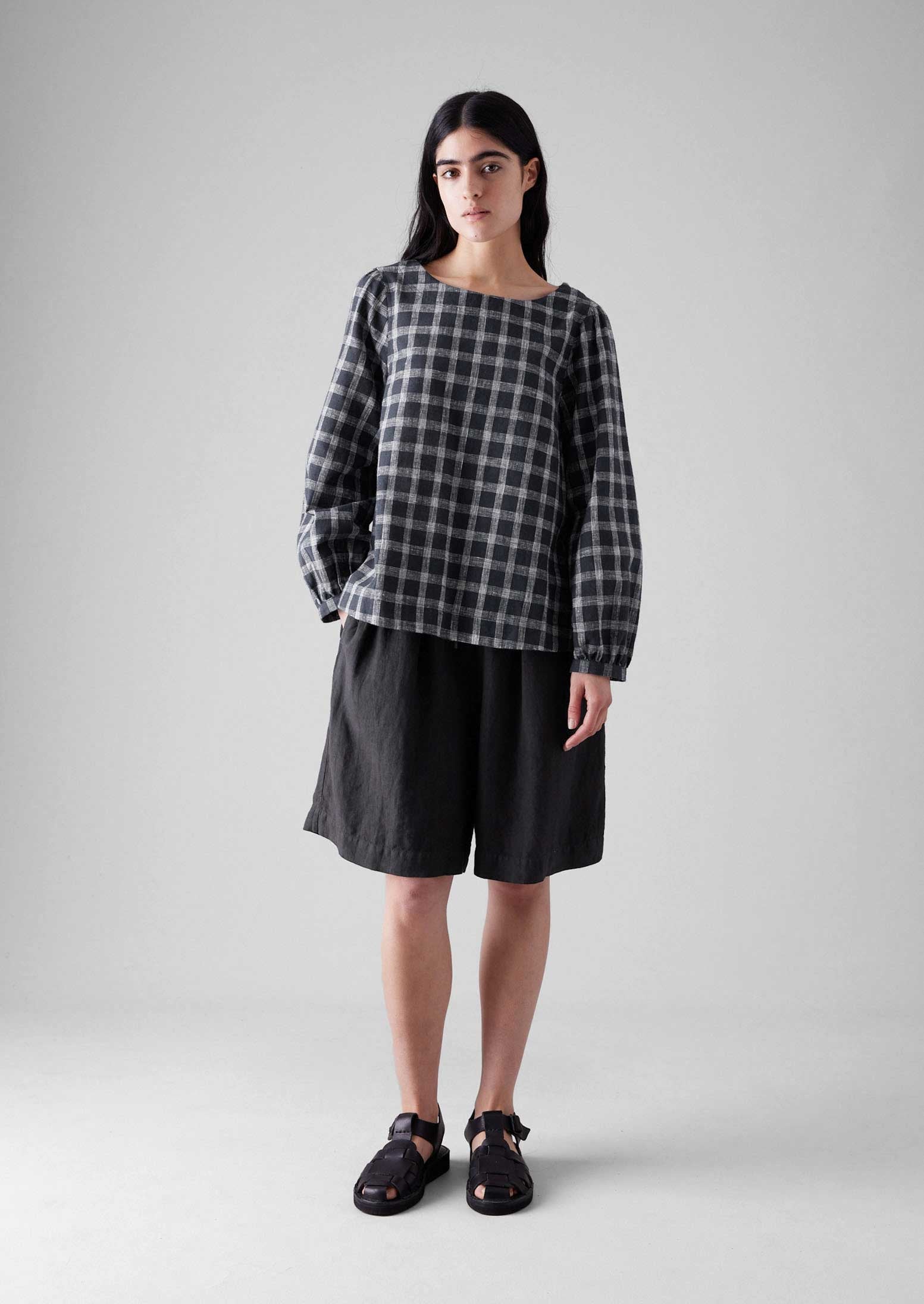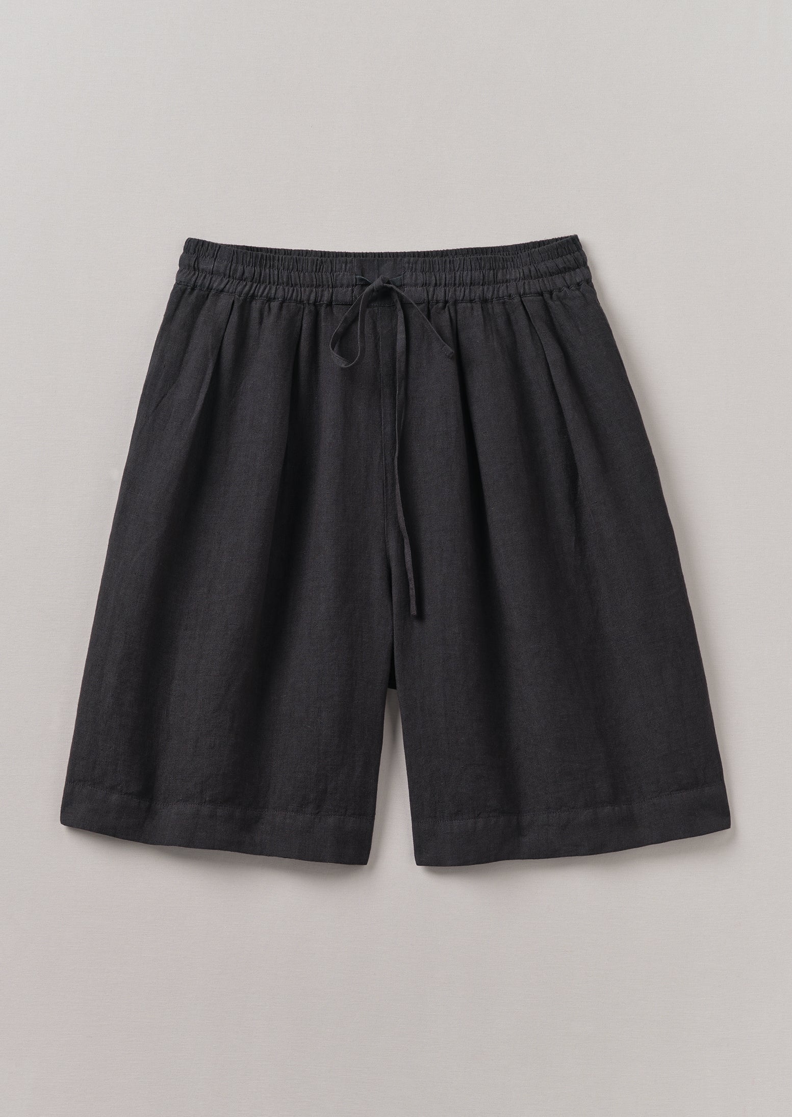 I nostri comodi shorts sono realizzati in lino tinto in capo e hanno una vita elasticizzata. Sono dotati di coulisse per un comfort che dura tutto il giorno. Le pieghe rivolte verso l'interno creano un senso di volume.