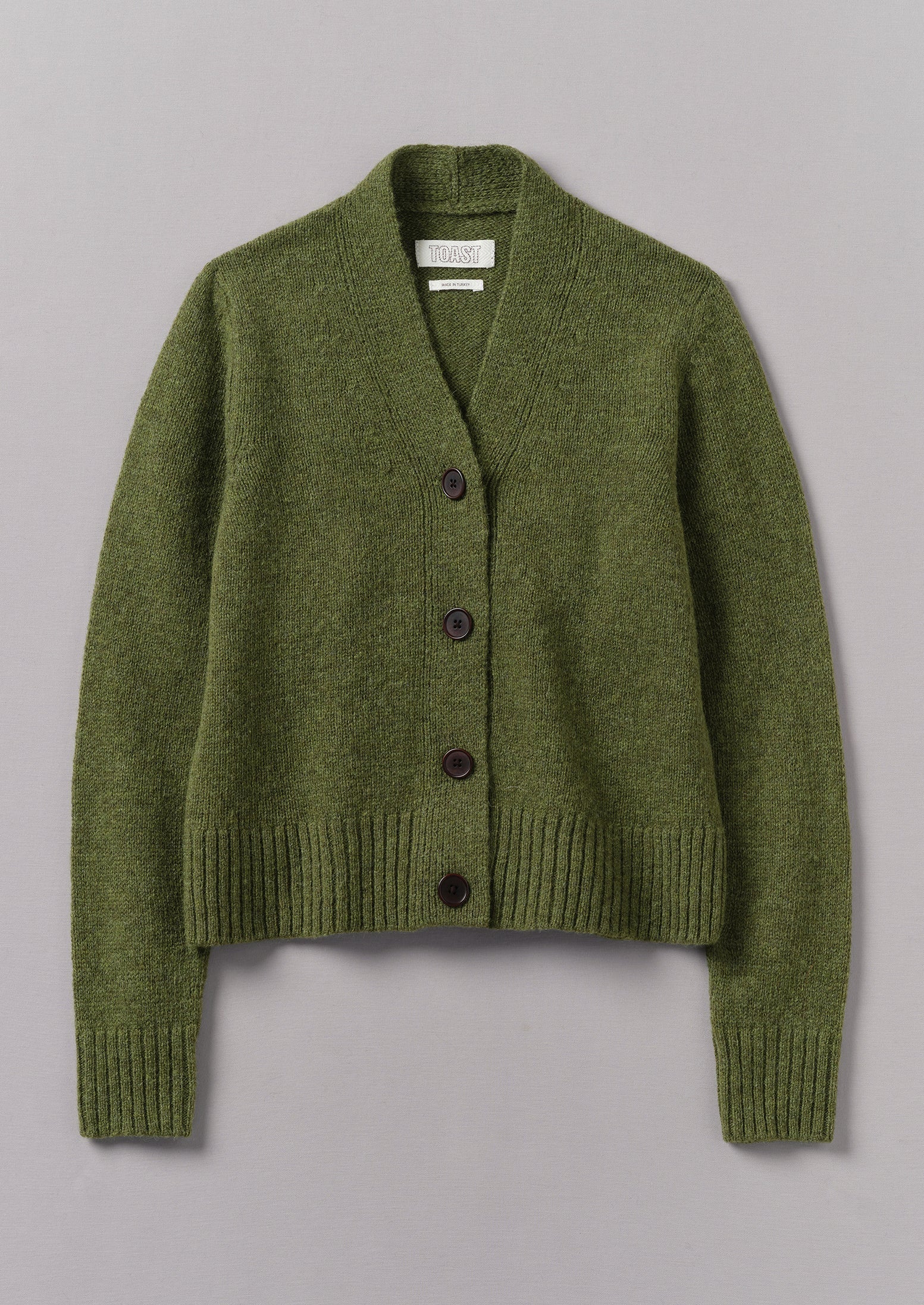 L'alto scollo a V e l'ampia patta sottolineano le influenze vintage del nostro cardigan. Lavorato a maglia in Turchia con lana color mélange filata localmente, ha una forma ordinata e arriva fino alla parte superiore dei fianchi.