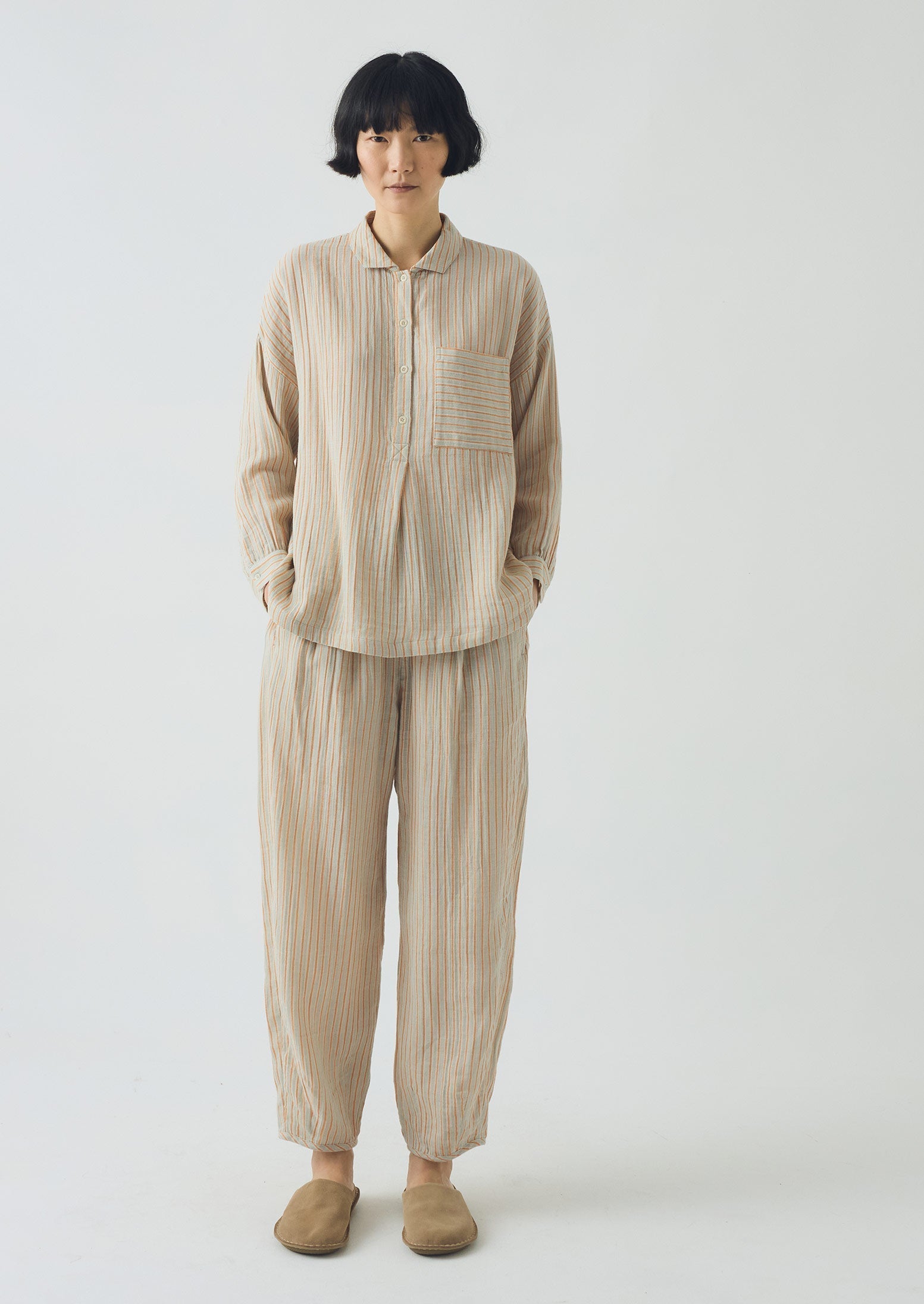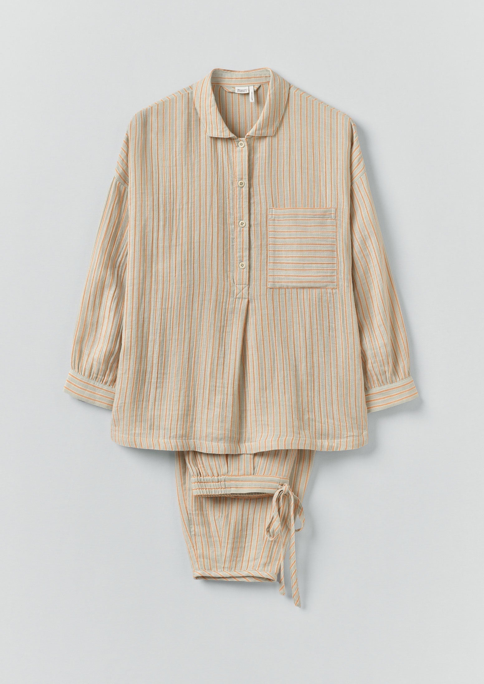 Pigiama in cotone stropicciato a righe | Salvia/Albicocca