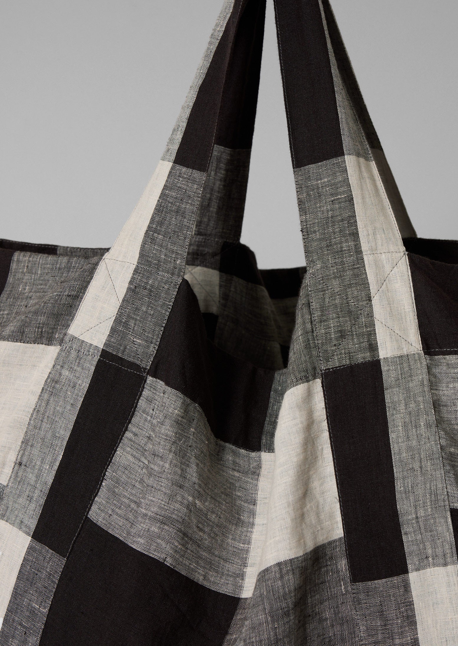 Borsa in lino leggero Macro Gingham | Ecru/Carbone