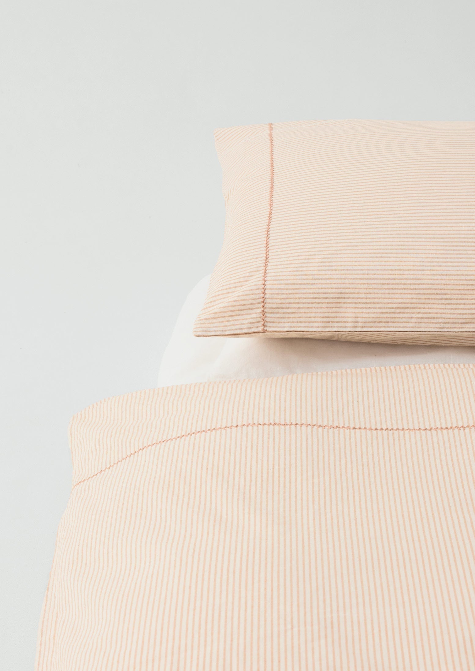 Copripiumino ricamato in morbido cotone a righe | Argilla/Ecru