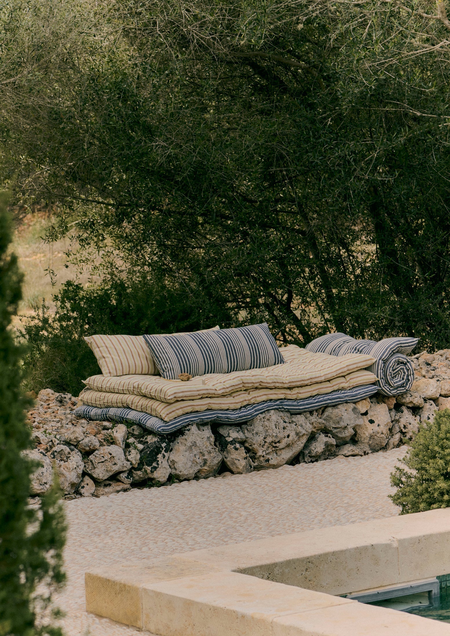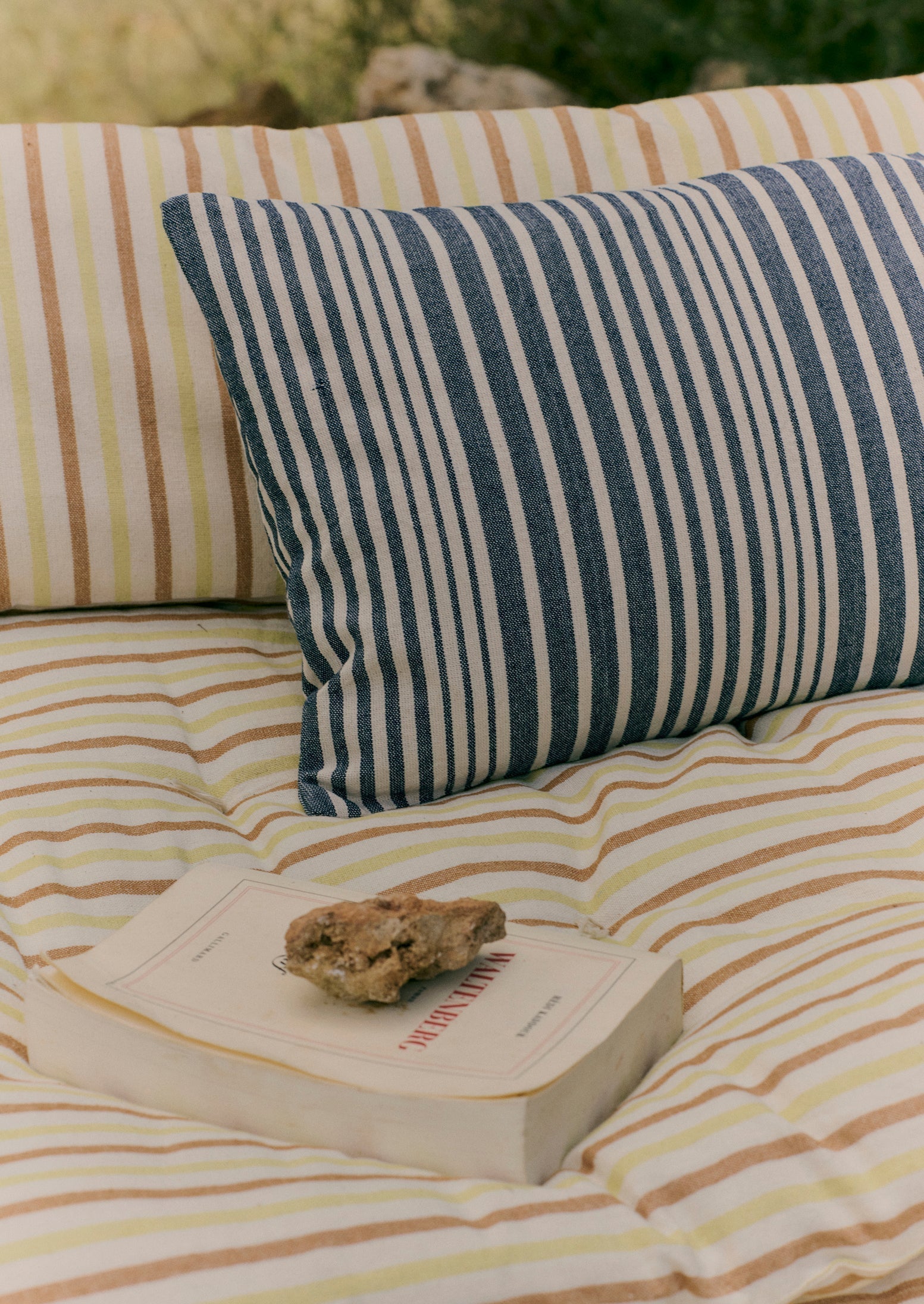 Cuscino a righe intrecciato a mano | Indaco/Ecru