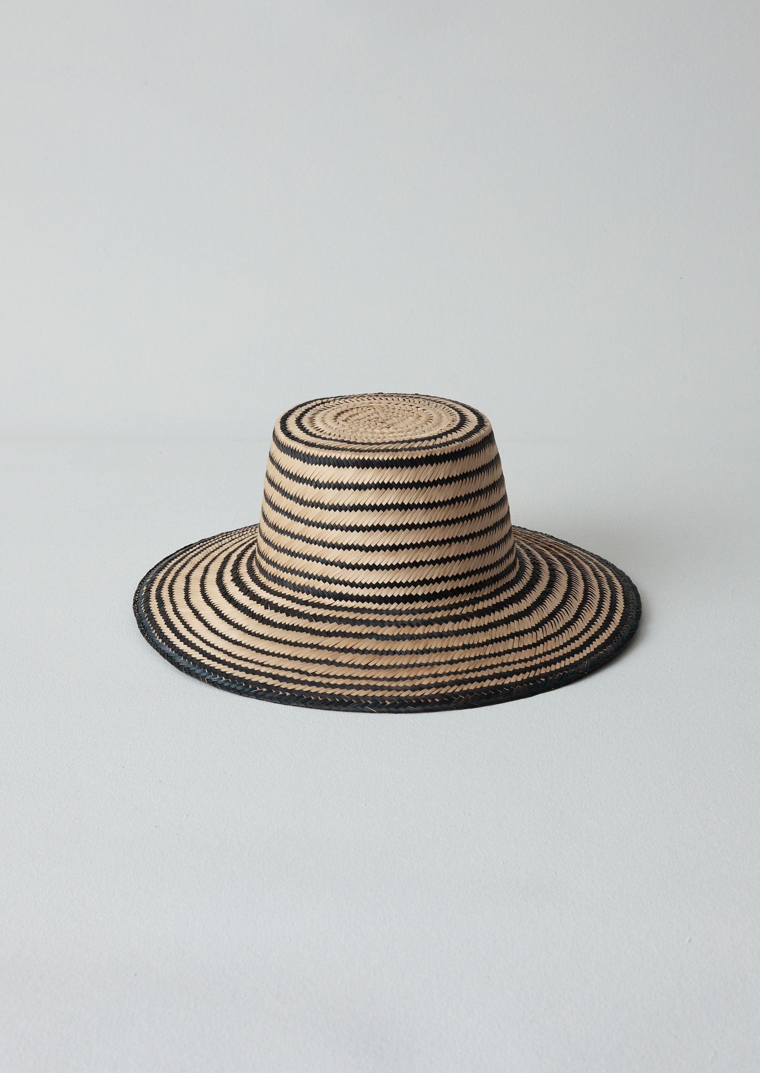 Cappello da sole bicolore, tessuto a mano da artigiani colombiani per Guanabana, un marchio dedito alla conservazione delle tecniche tradizionali. Progettato in esclusiva per TOAST, è realizzato in palma naturale tinta a mano e presenta una tesa larga.