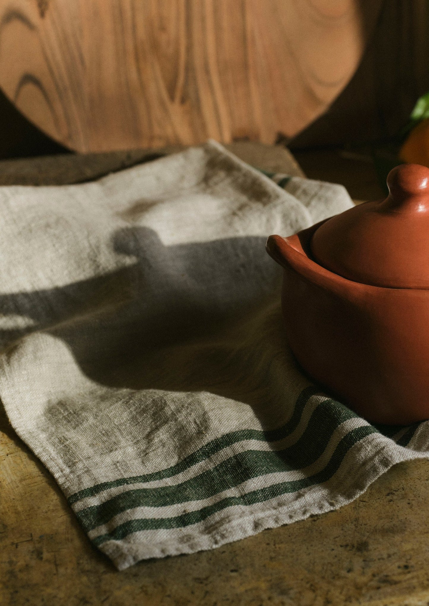 Strofinaccio in lino a righe irregolari | Naturale/Foresta
