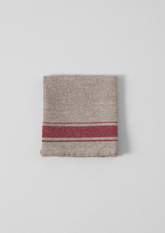 Strofinaccio in lino a righe provenzali | Naturale/Rosso
