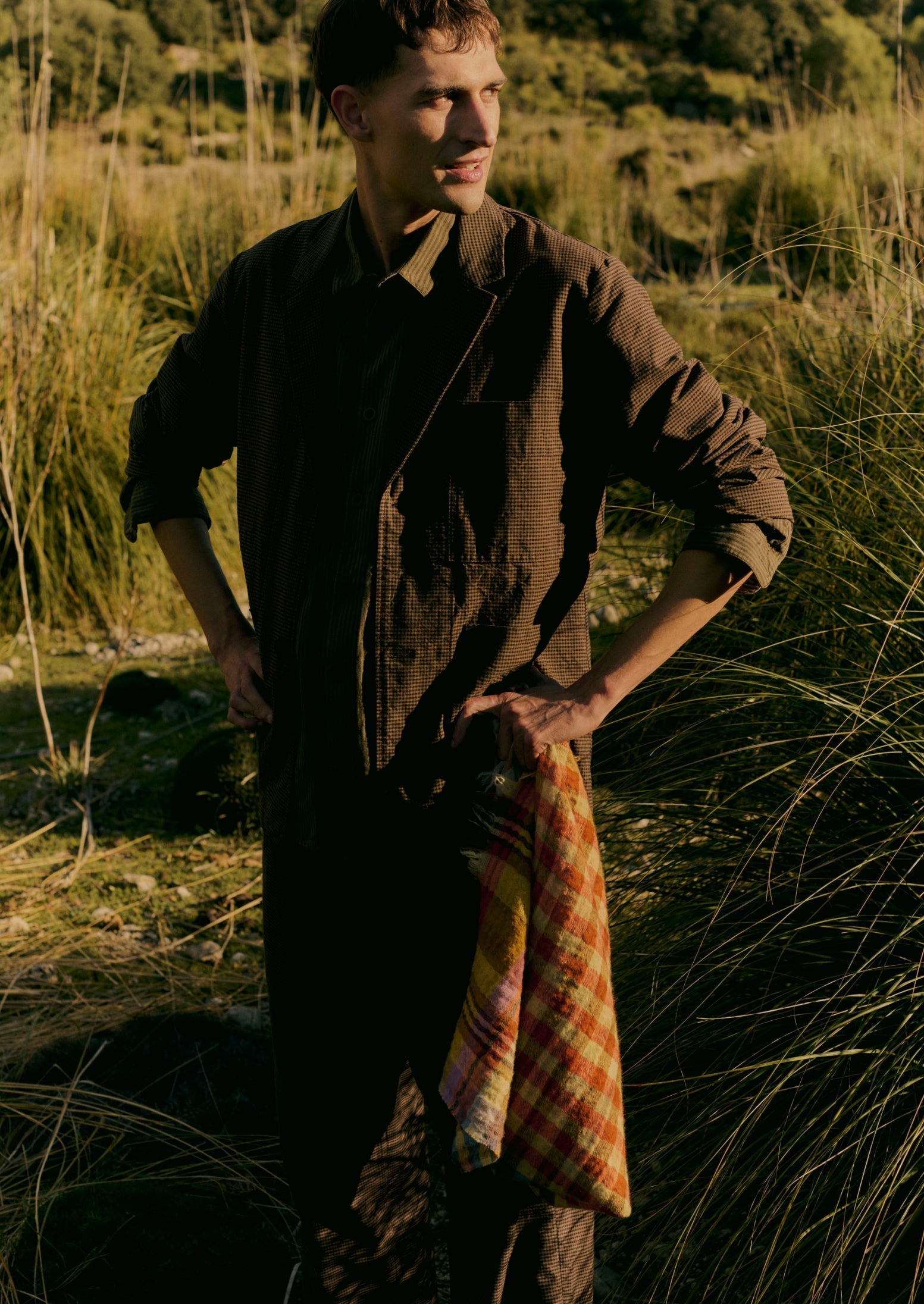Blazer a quadretti destrutturato | Terra d'ombra bruciata