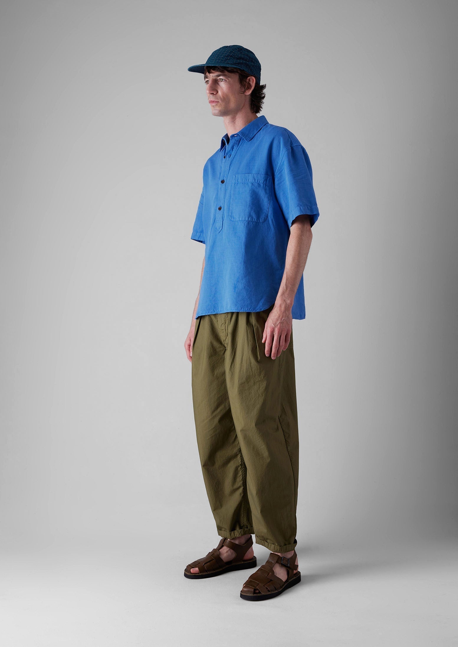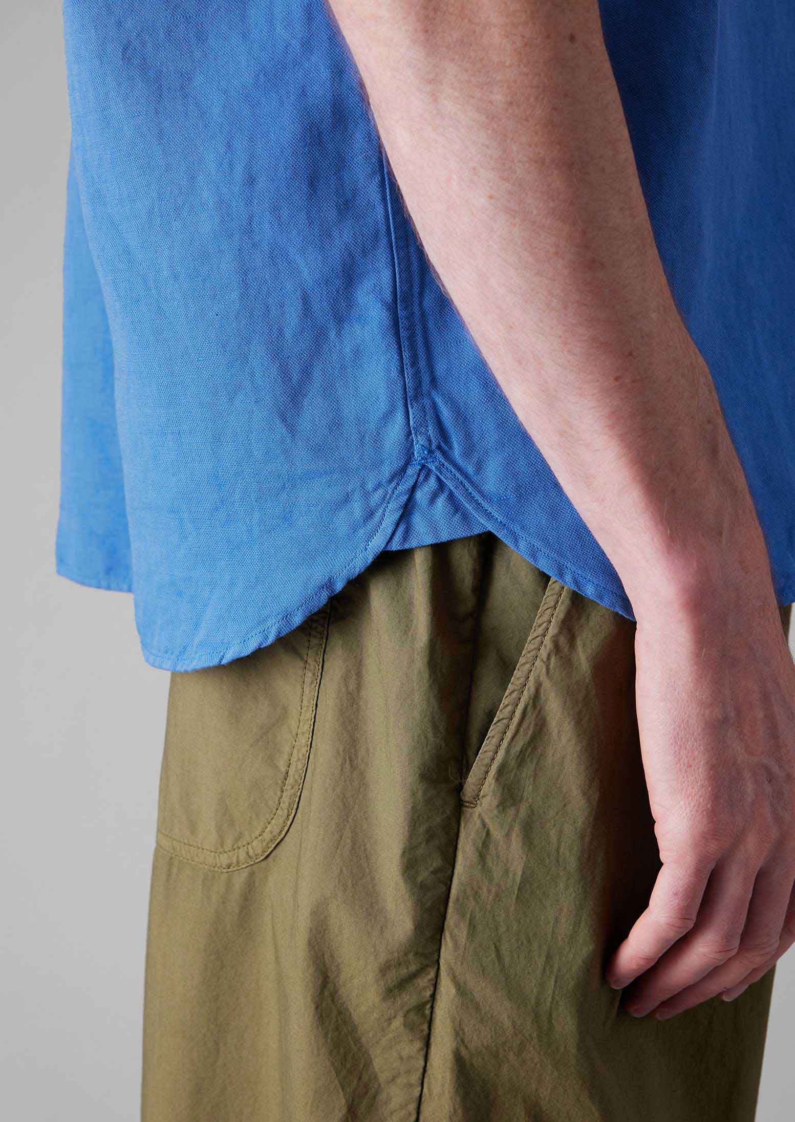 La nostra camicia a maniche corte è realizzata in morbido twill misto cotone e lino, tinta in capo per creare una variazione naturale di colore e dal taglio rilassato con orlo arrotondato. Fa parte della nostra collezione uomo.