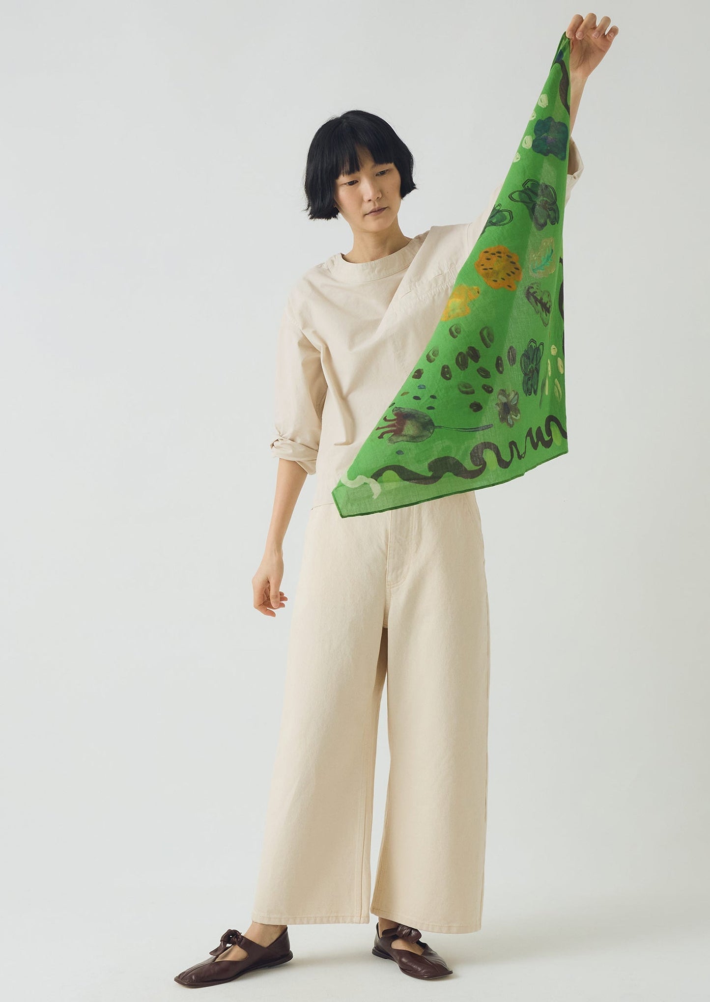 I motivi pittorici ispirati ai fiori raccolti dagli archivisti botanici caratterizzano la nostra bandana, stampata in India in una grande forma quadrata su cotone leggero.