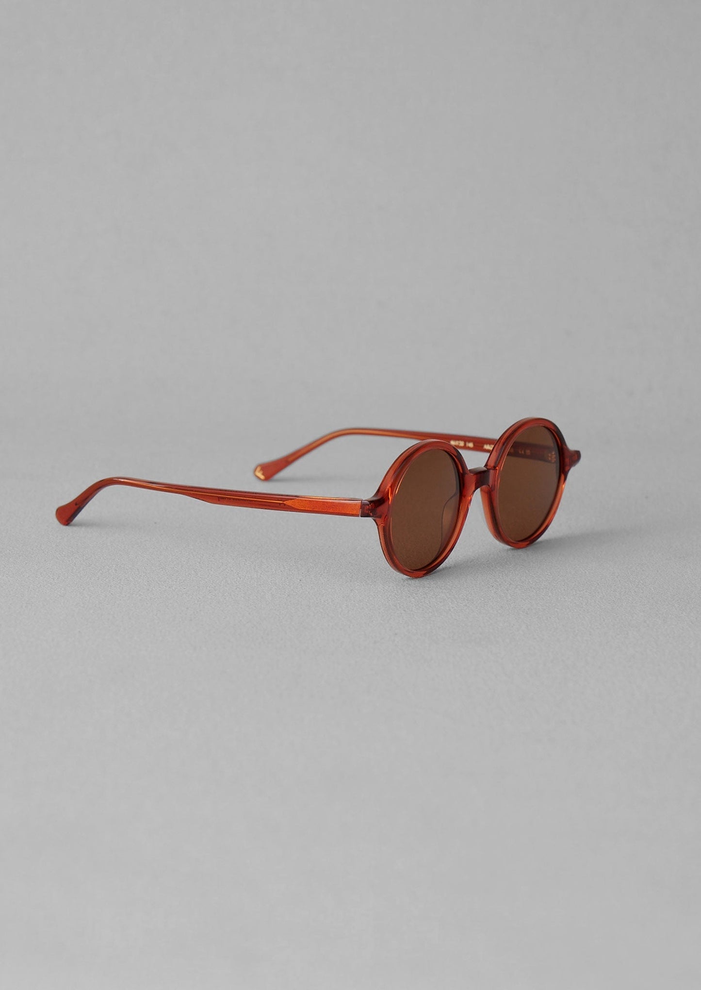 La forma rotonda e le aste sottili conferiscono semplicità a questi occhiali da sole Argyll del marchio londinese Finlay & Co. Realizzati ai piedi delle Alpi italiane in bioacetato da Mazzucchelli, fondata nel 1849. Dotati di lenti Zeiss che offrono una protezione completa dai raggi UVA/UVB.