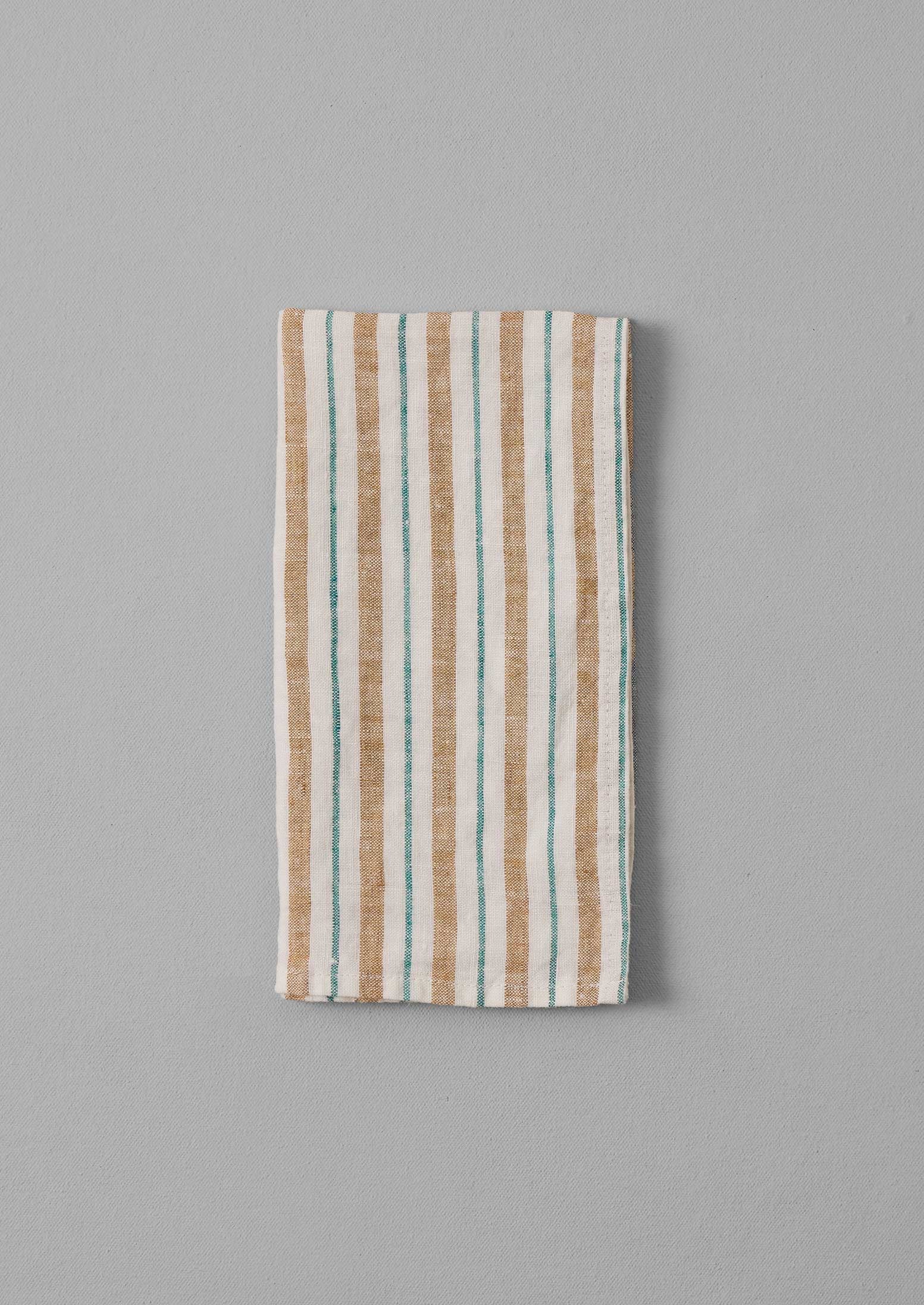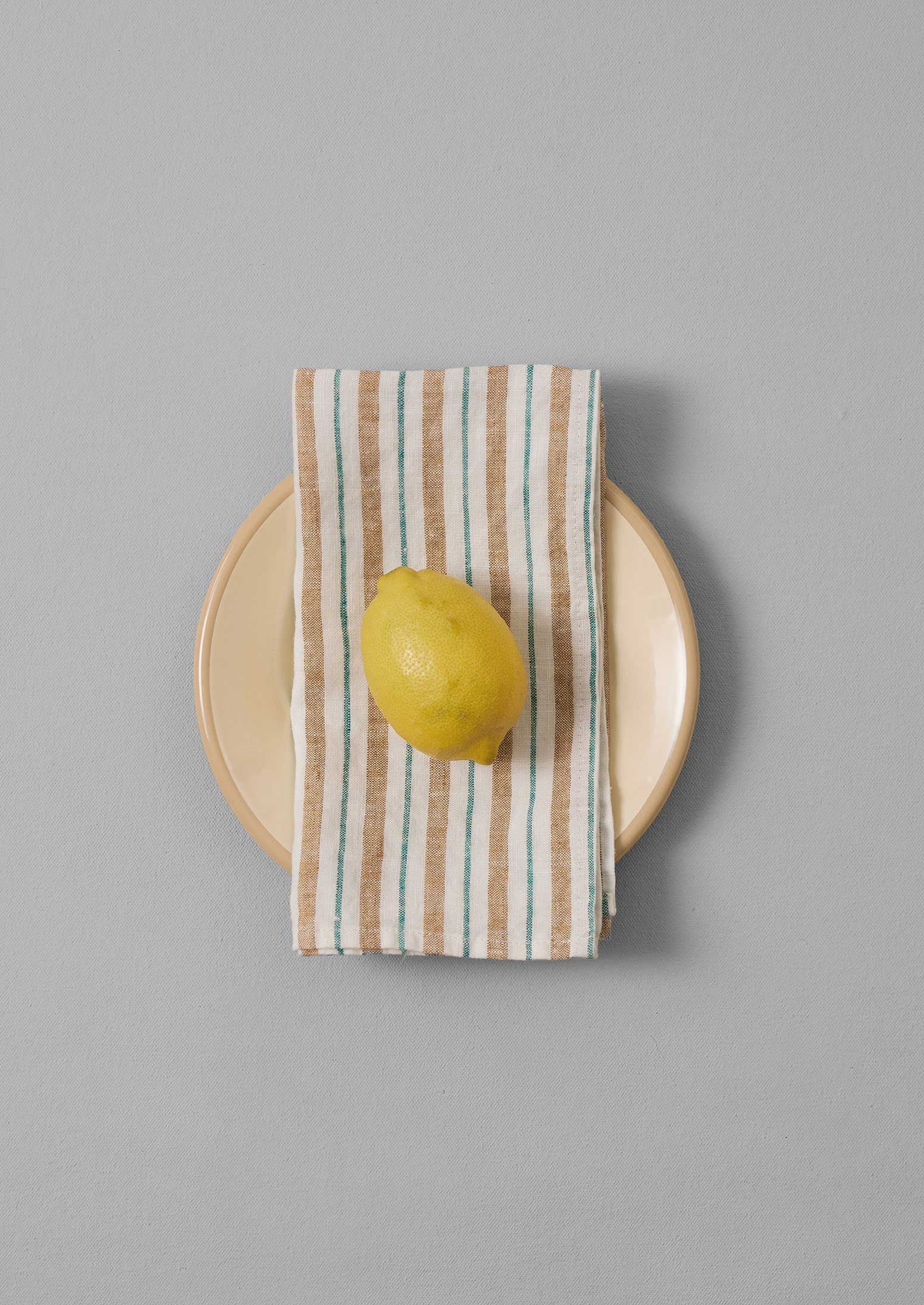 Tovagliolo di lino a righe Faro | Caramello/Verde...