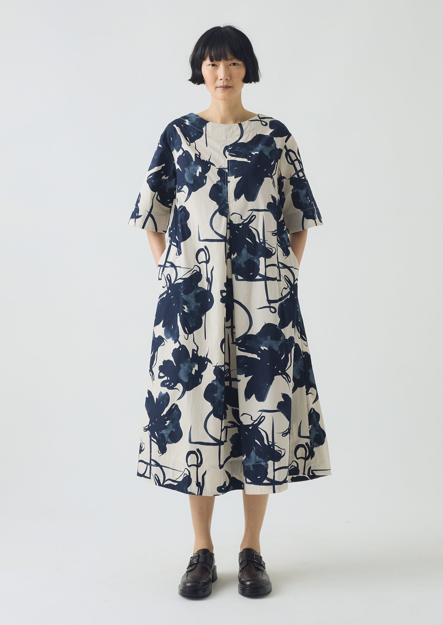 Abito in popeline di cotone con stampa Pen...