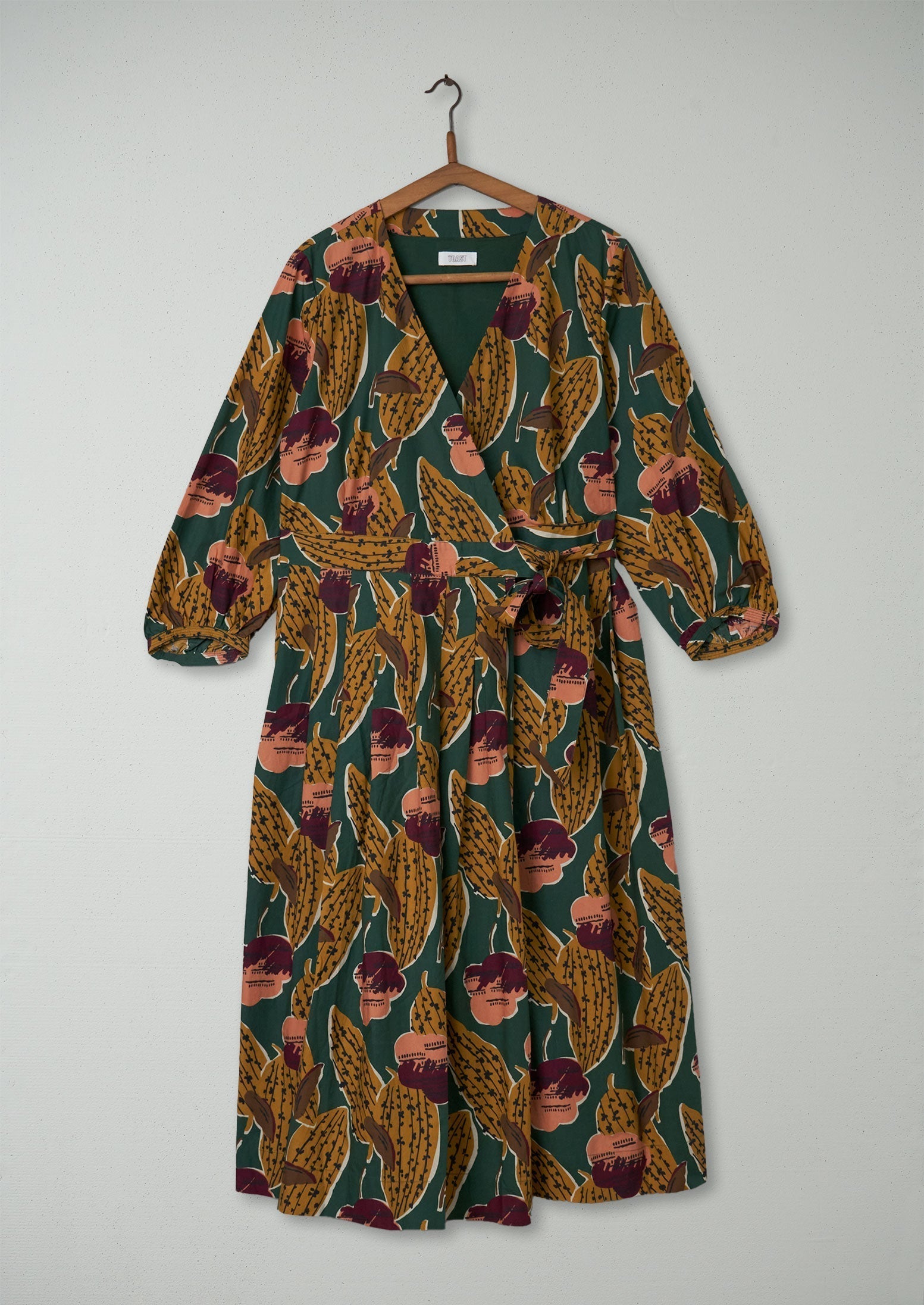 Abito avvolgente con stampa a foglie...