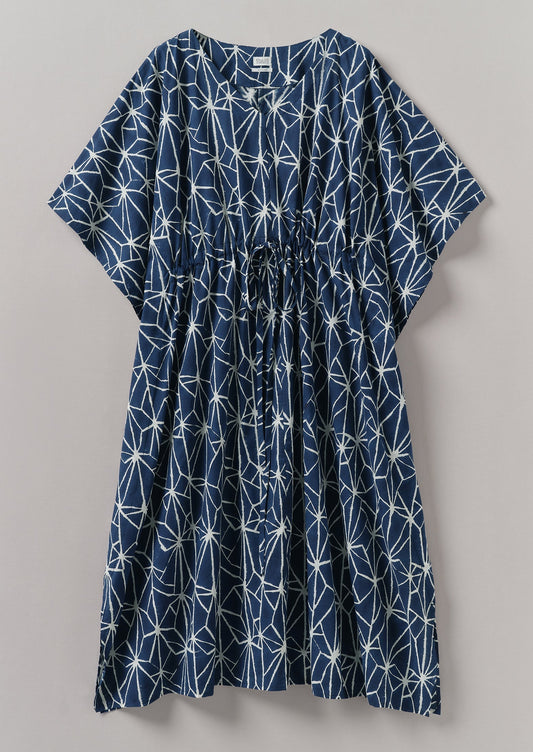 Abito caftano con stampa a blocchi Prism | Indaco/Ecru
