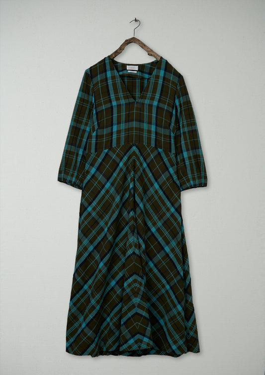 Abito in seersucker a quadri Astrid rinnovato, taglia 16 (112) | Verde petrolio/verde mare