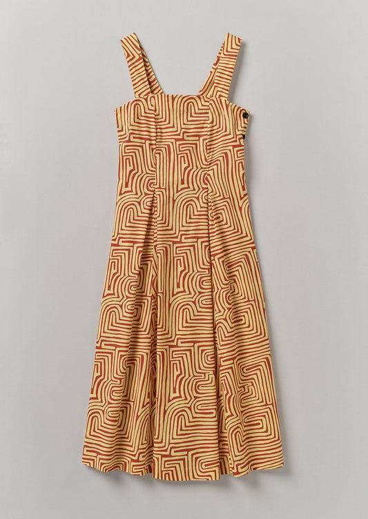Abito in popeline di cotone con stampa labirinto | Mattone/Scorza di limone