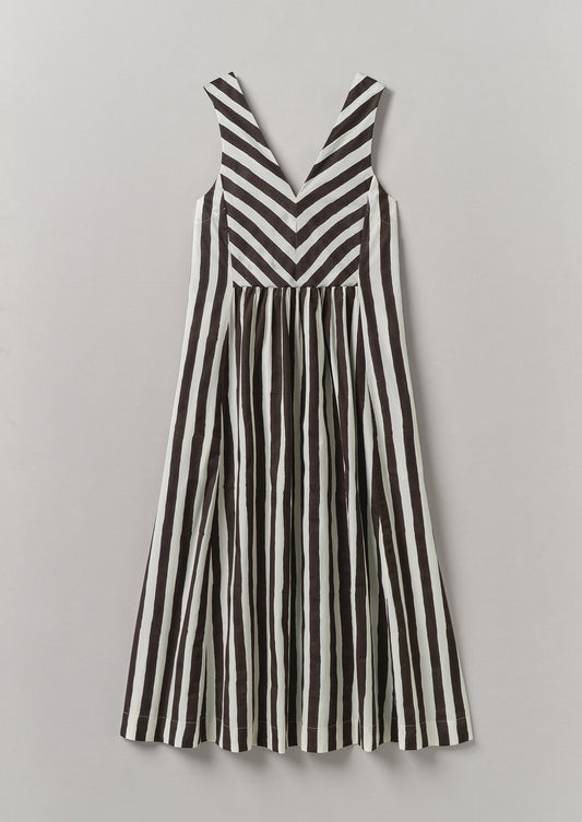 Abito in cotone con stampa a blocchi e strisce ondulate | Ecru/Cioccolato