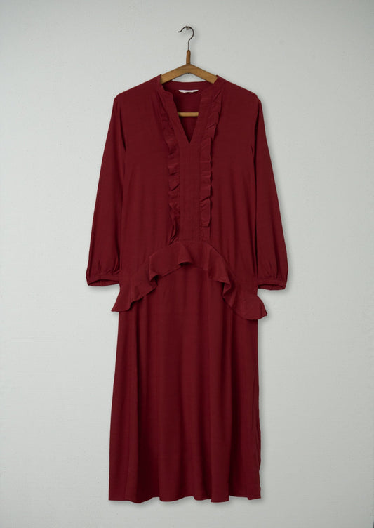 Abito con volant riutilizzato taglia 8 (868) | Ruggine scuro
