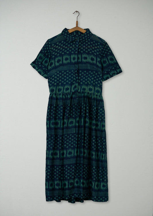 Abito con stampa di felci riutilizzato taglia 16 (1040) | Blu ardesia