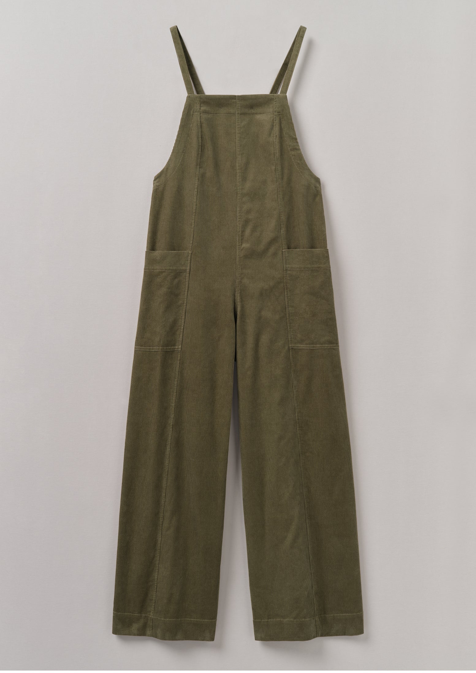 La nostra tuta casual è realizzata in velluto a coste di cotone biologico, con scollo quadrato e gambe ampie. Presenta aperture laterali con bottoni su entrambi i lati e profonde tasche applicate.