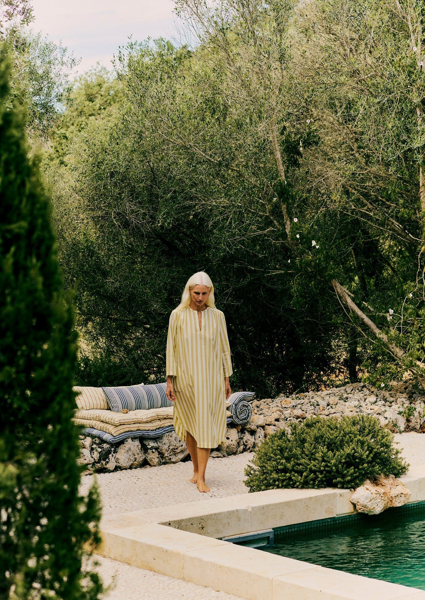 Caftano in cotone biologico Canopy Stripe | Ecru/Lime...