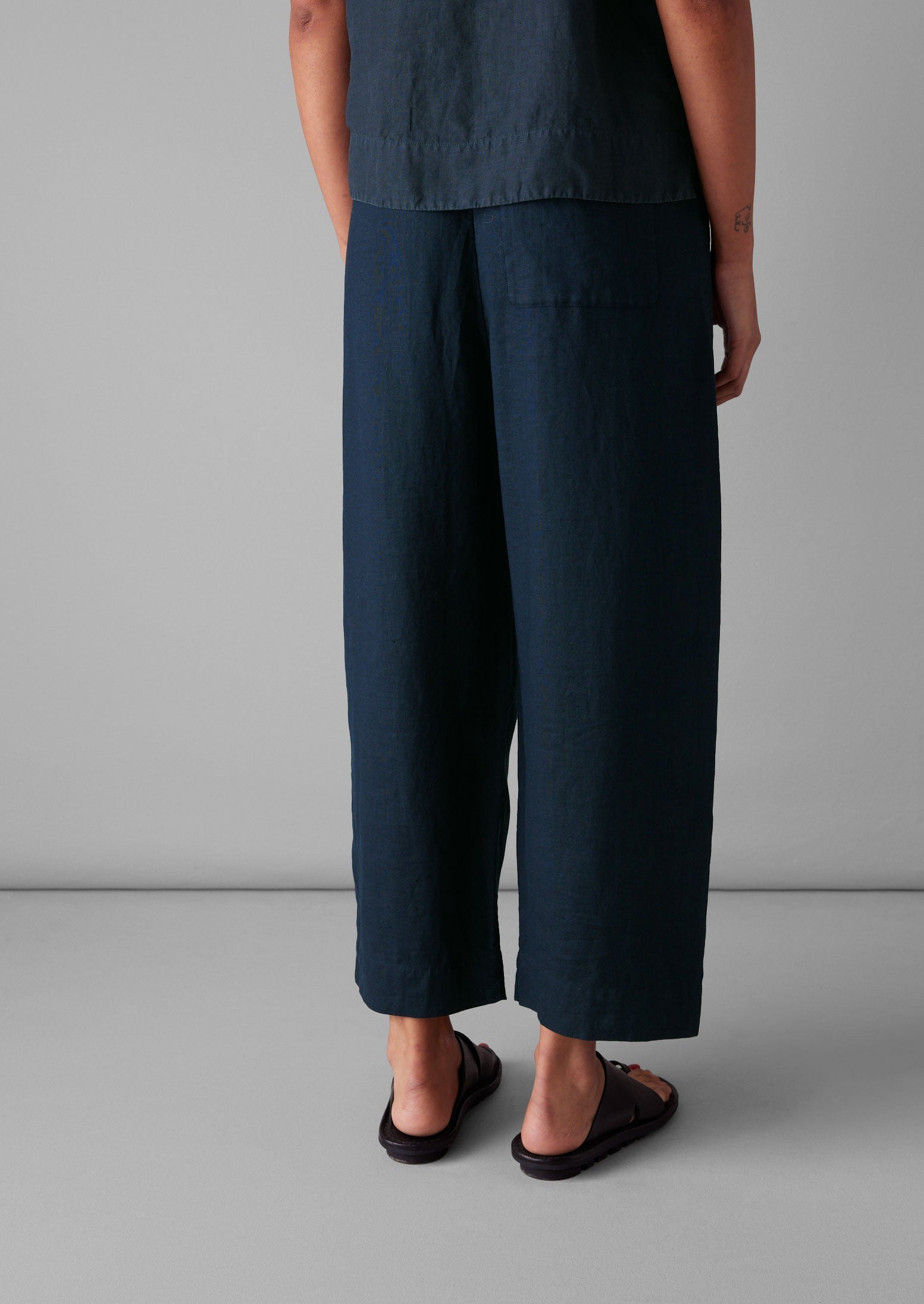 Pantaloni a gamba a botte in lino tinto...