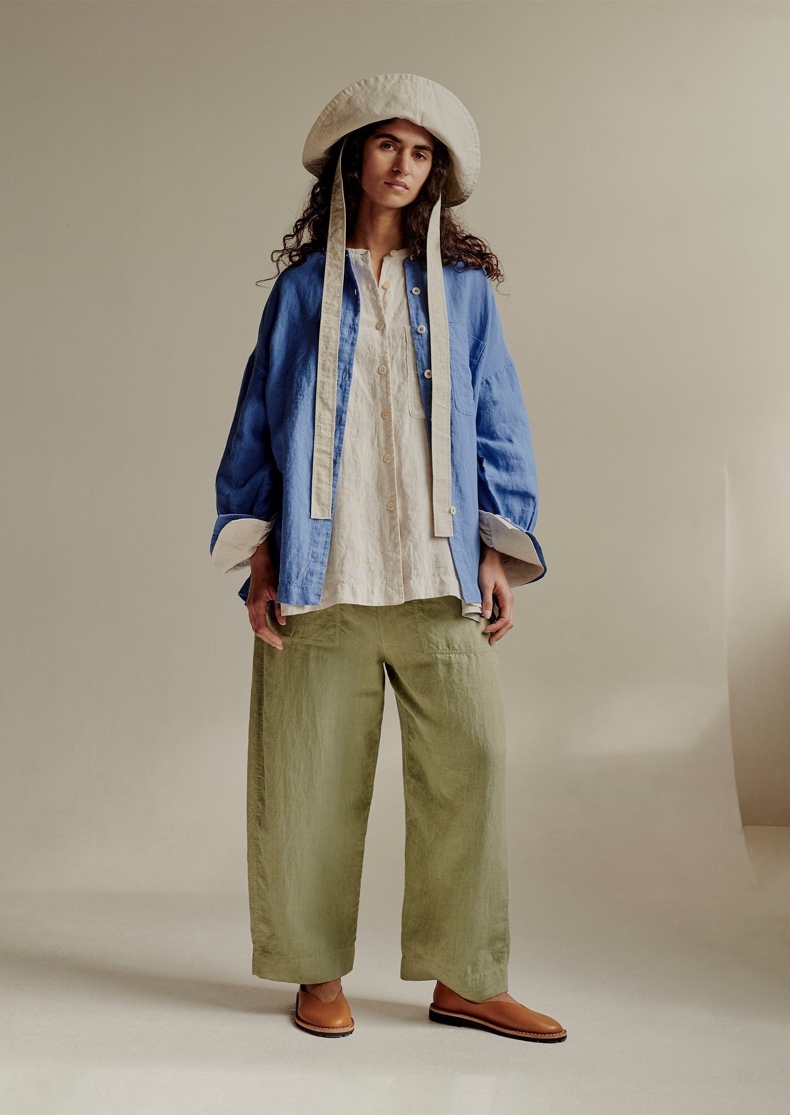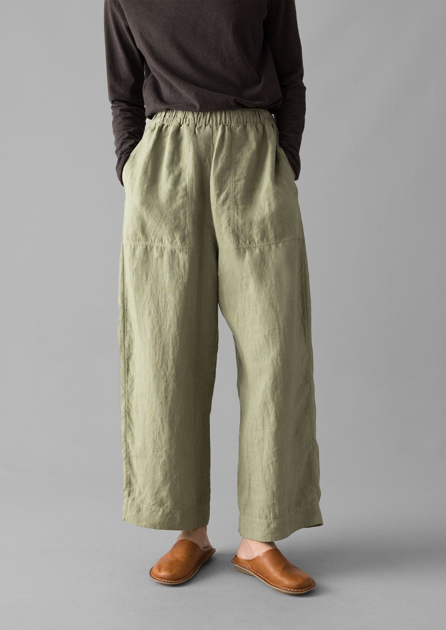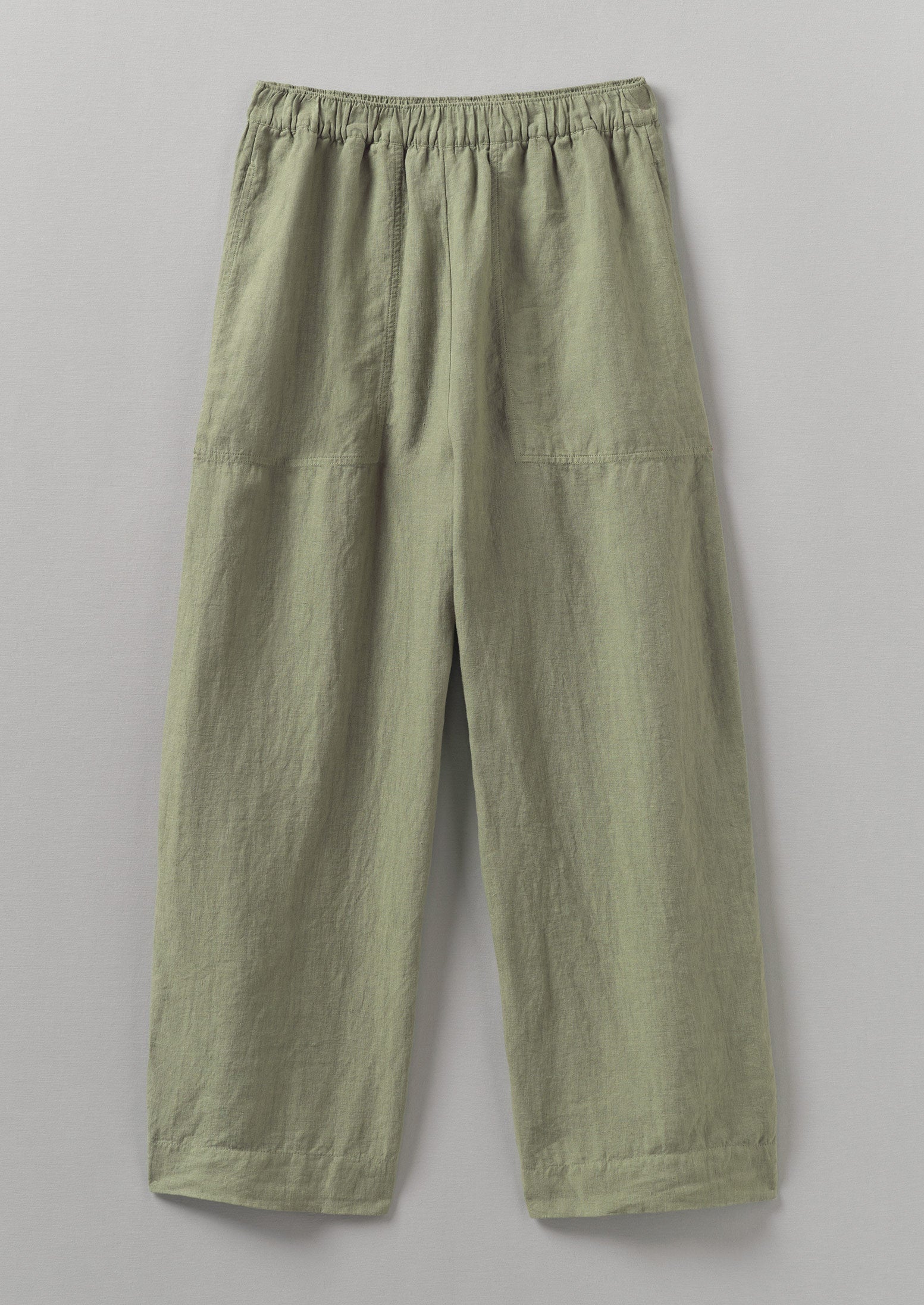 Lino fiammato. Tinto in capo. Vestibilità comoda. Vita elasticizzata. Tasche laterali. Tasca posteriore applicata. Gambe a botte accorciate.
