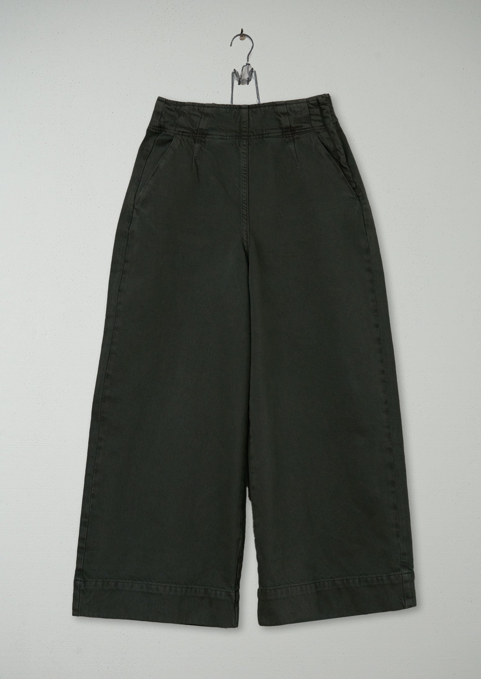 Pantaloni a culotte in denim con parte anteriore piatta riutilizzati, taglia 16 (731) | Verde cenere