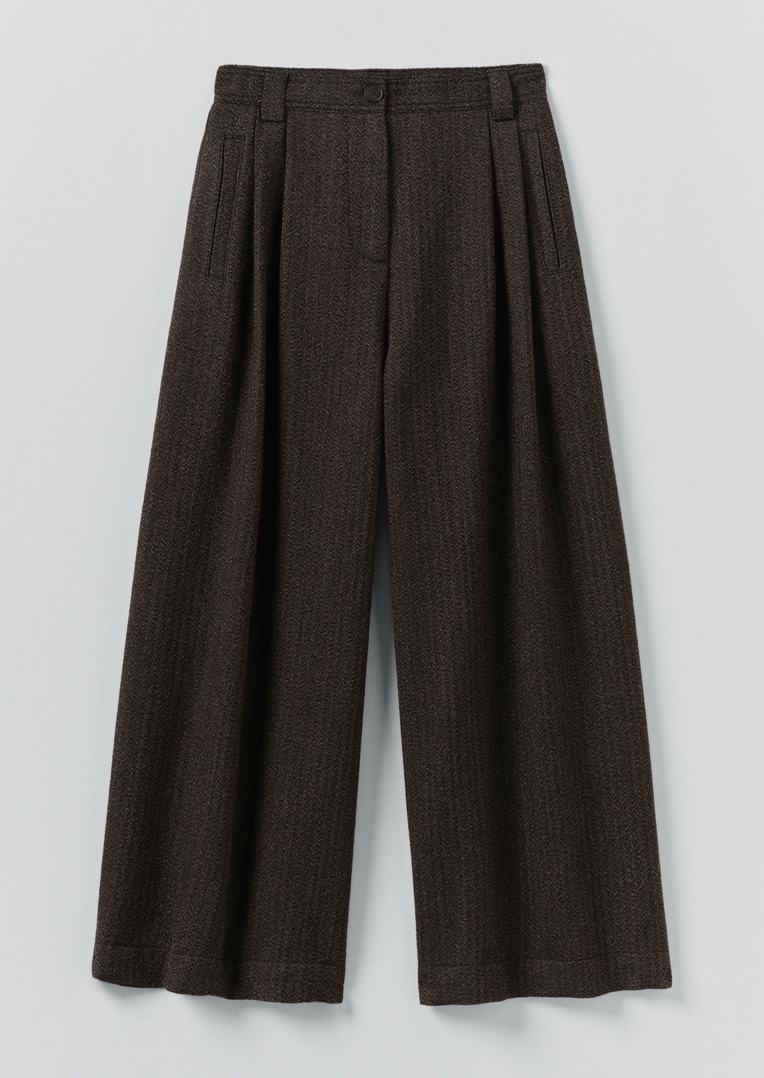 Pantaloni in lana a spina di pesce spezzata...