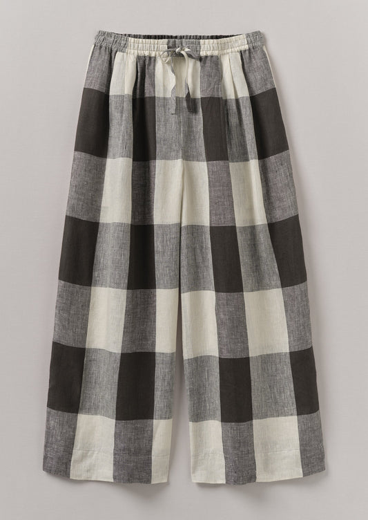 Pantaloni in lino leggero Macro Gingham | Ecru/Carbone