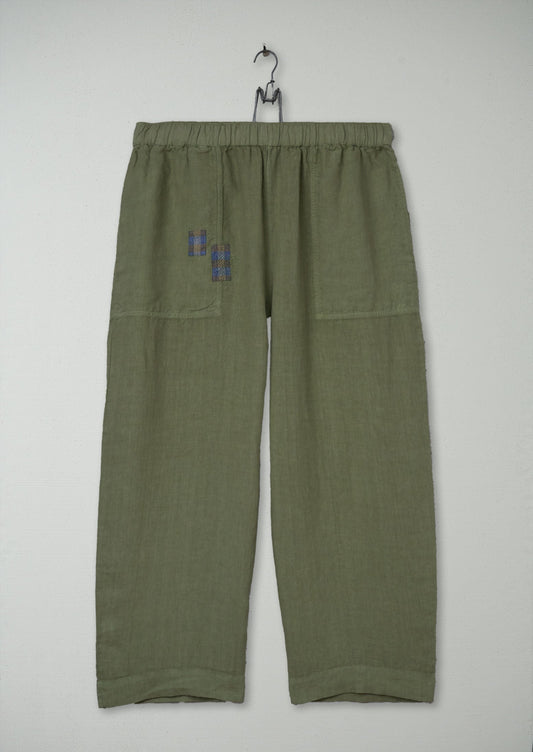 Pantaloni a gamba a botte in lino tinto in capo | Verde Durian
