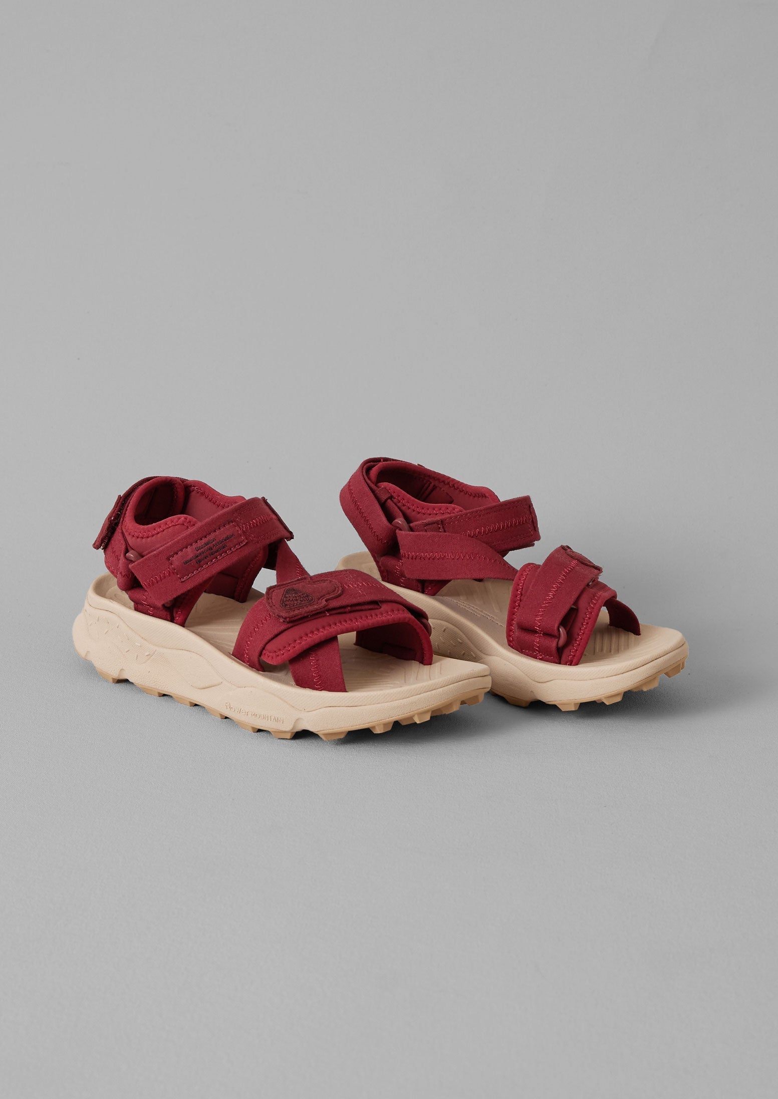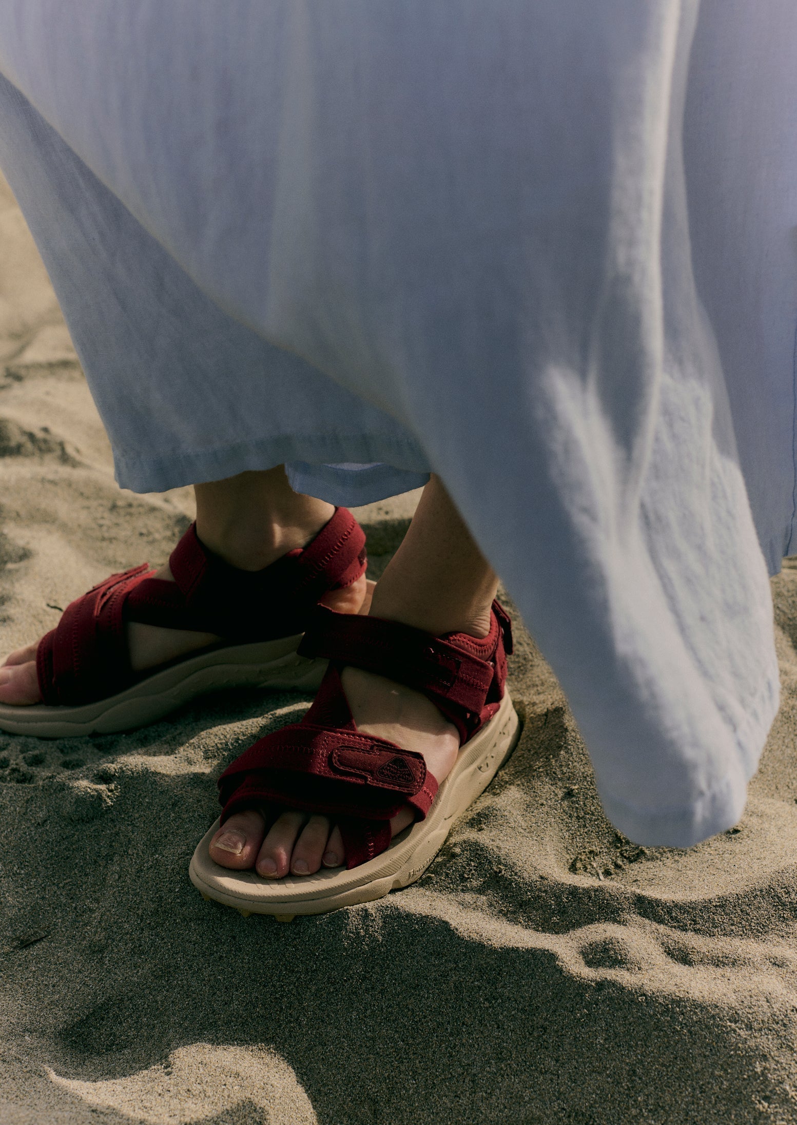 Sandali regolabili con cinturino del marchio giapponese Flower Mountain, disegnati in esclusiva per TOAST. Realizzati con materiali riciclati, tra cui cotone pre-consumo, montati su una suola in gomma al 100%. Fino al 40% di ogni suola Kaiso è realizzata con pellet di resina sostenibile, ottenuti combinando biomassa di alghe con polimeri di base.