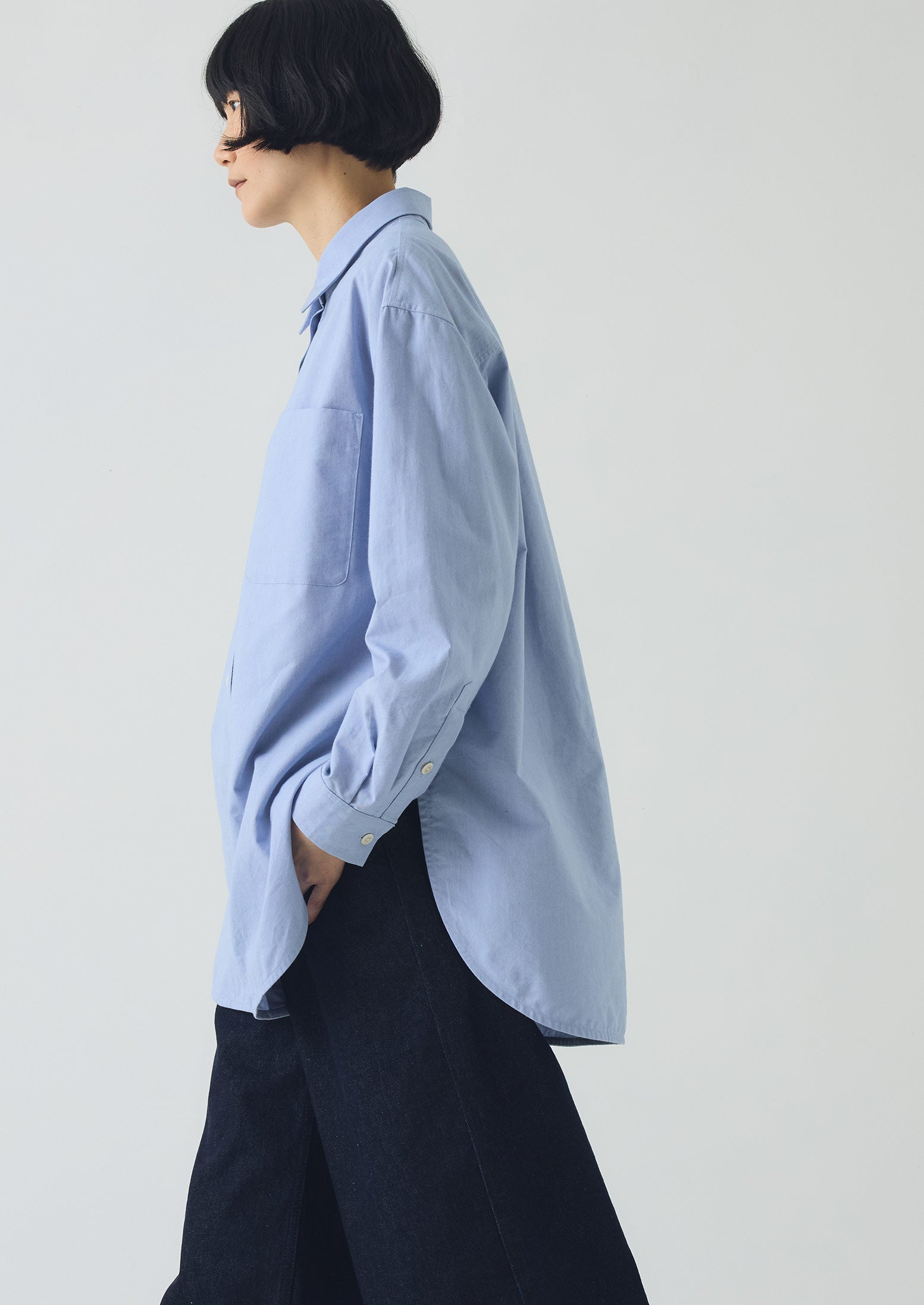 Camicia lunga oversize in cotone Oxford | Blu...