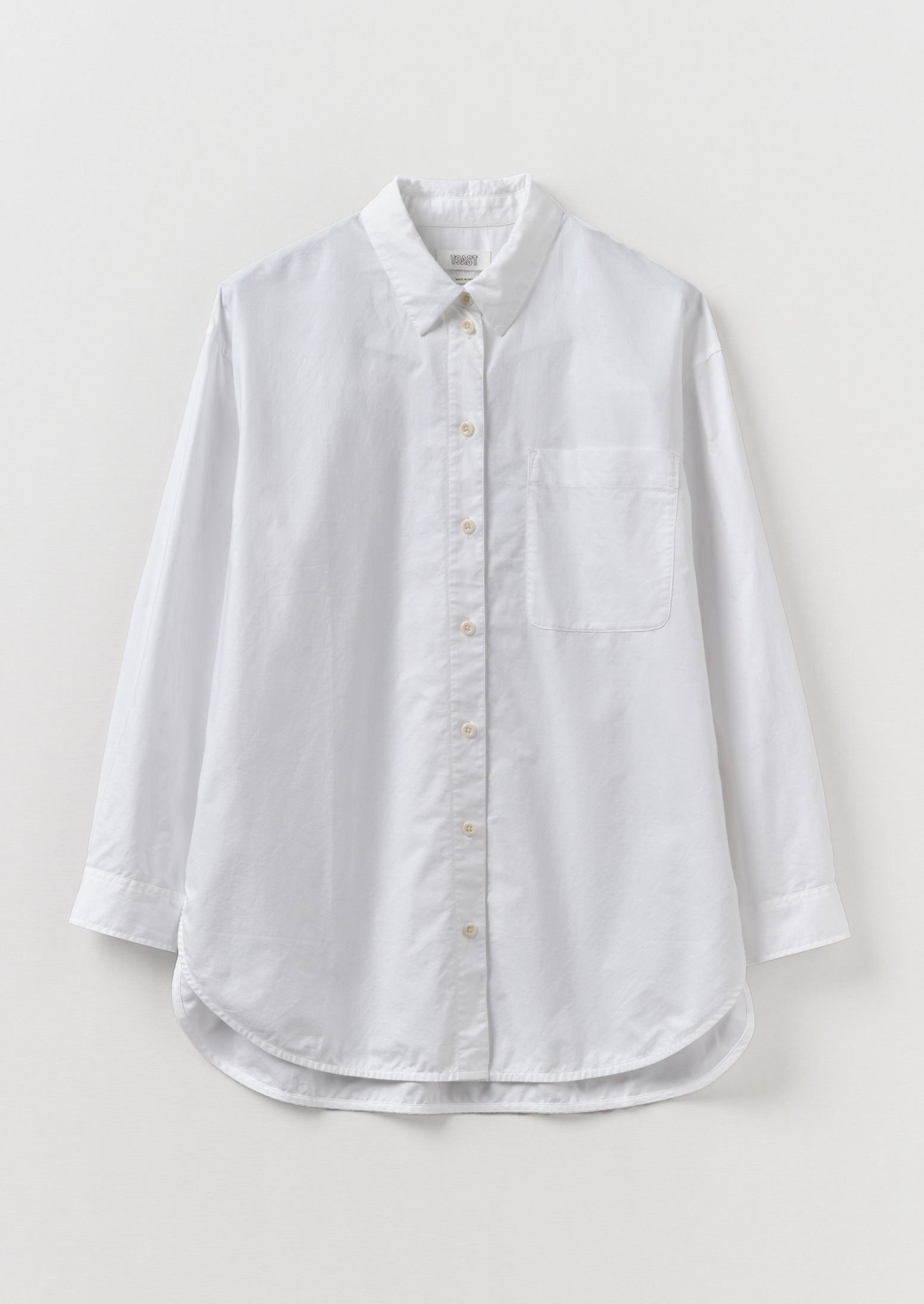 La nostra camicia oversize è realizzata in fresco cotone biologico Oxford, con una tasca applicata sul petto e un orlo curvo leggermente più lungo sul retro.