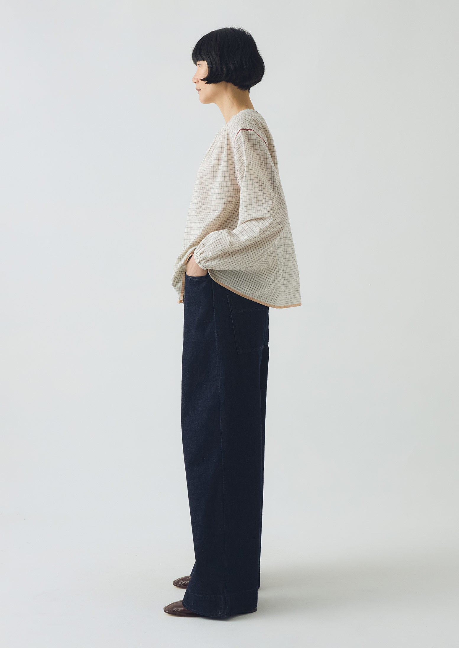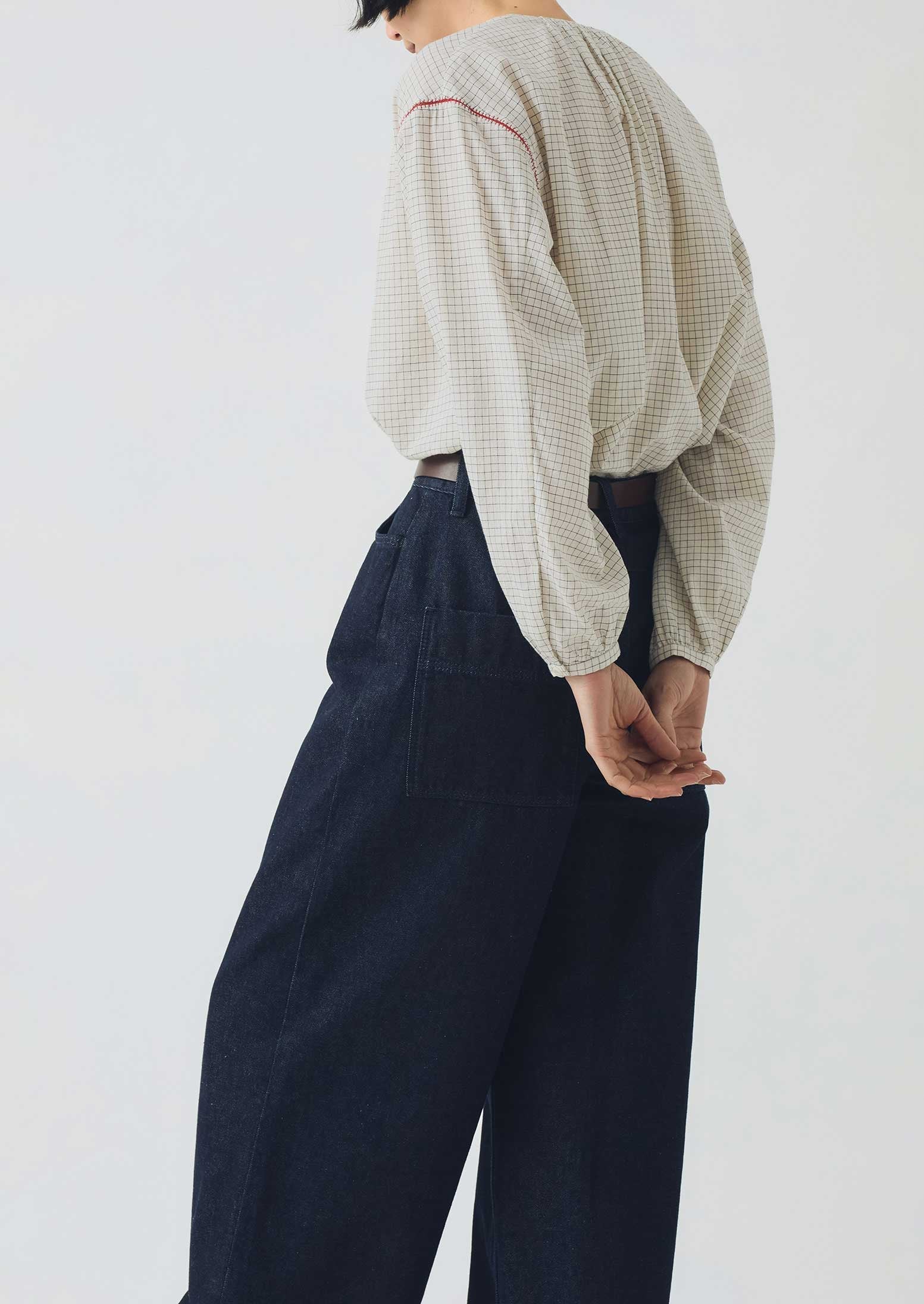 Camicia Mulmul a quadri | Ecru