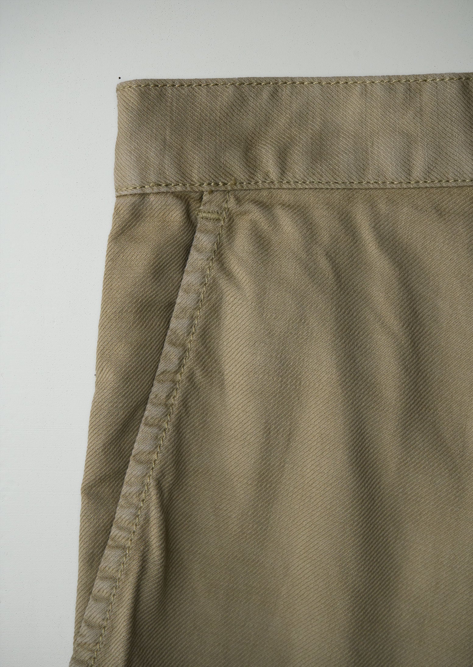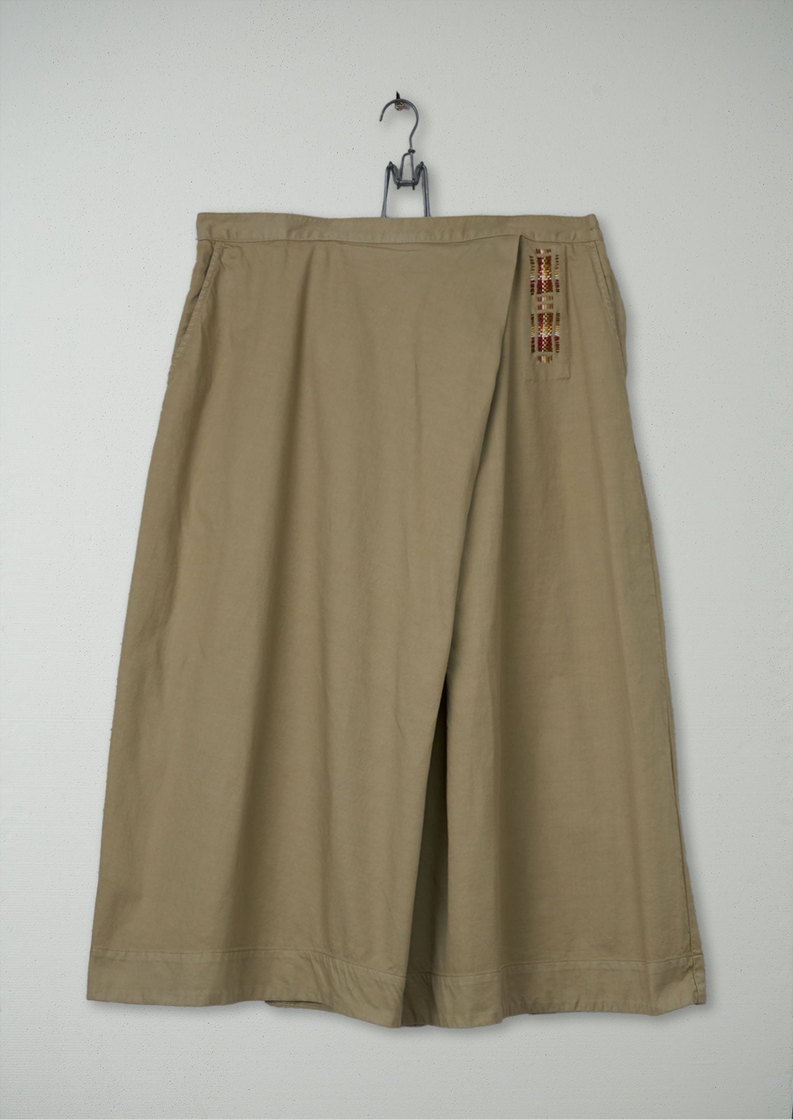 La nostra gonna in twill di cotone con pieghe sul davanti è stata riparata con rammendo e ricamo. Pesante e morbido, in twill di cotone. Veste perfettamente in vita e sui fianchi. Dettaglio di pieghe asimmetriche invertite sul davanti. Chiusura laterale con cerniera metallica nascosta e bottone singolo in corno scuro.