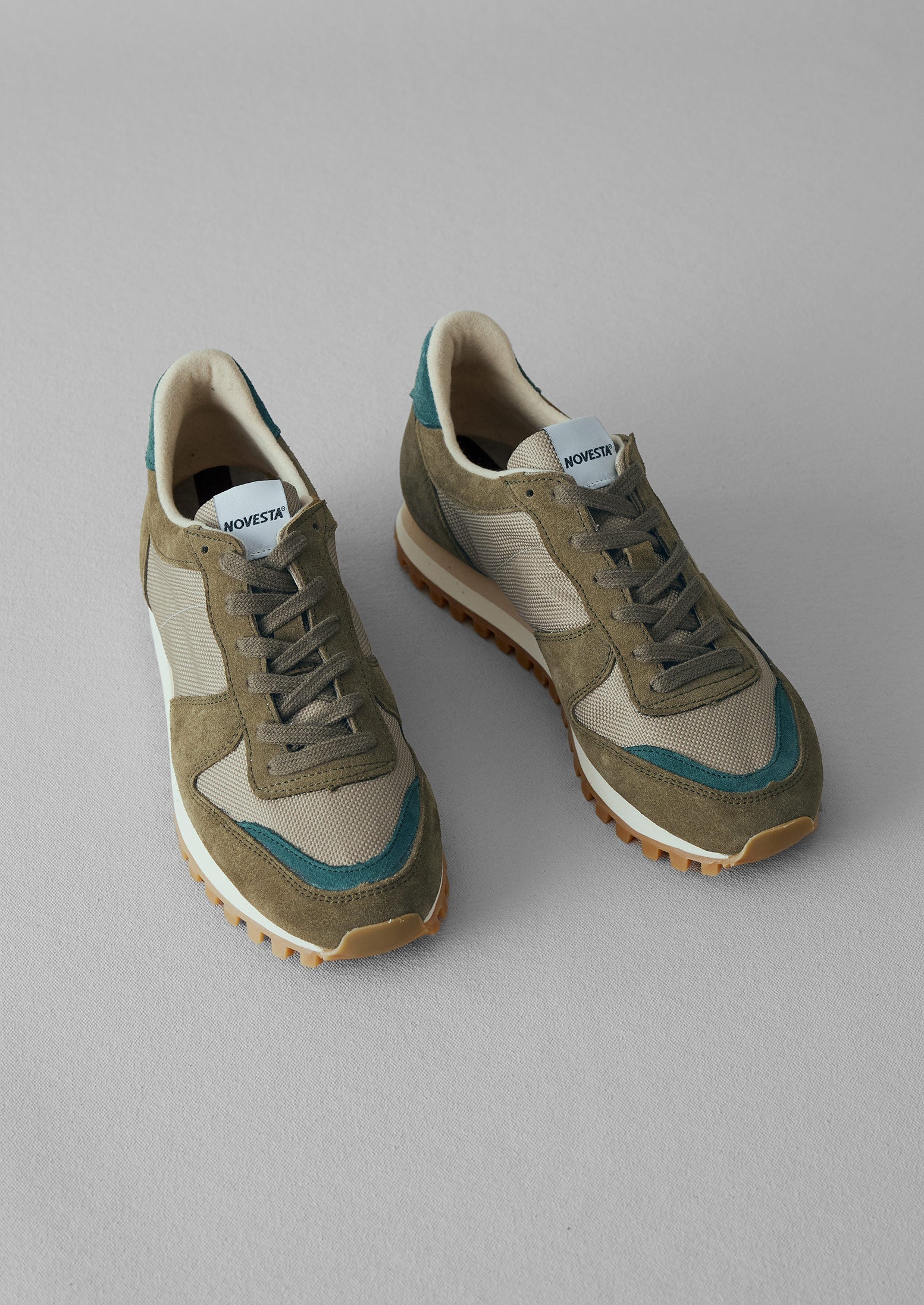 Pratiche sneaker Marathon Trail di Novesta, realizzate in esclusiva per TOAST in tela di nylon riciclato e pelle scamosciata. Ispirate a una scarpa da running ma pensate per il clima asciutto, con una comoda intersuola in schiuma e una suola battistrada in gomma naturale per il massimo comfort durante tutto il giorno. Pelle scamosciata e tela di nylon riciclato. Intersuola in schiuma. Suola battistrada in gomma naturale.