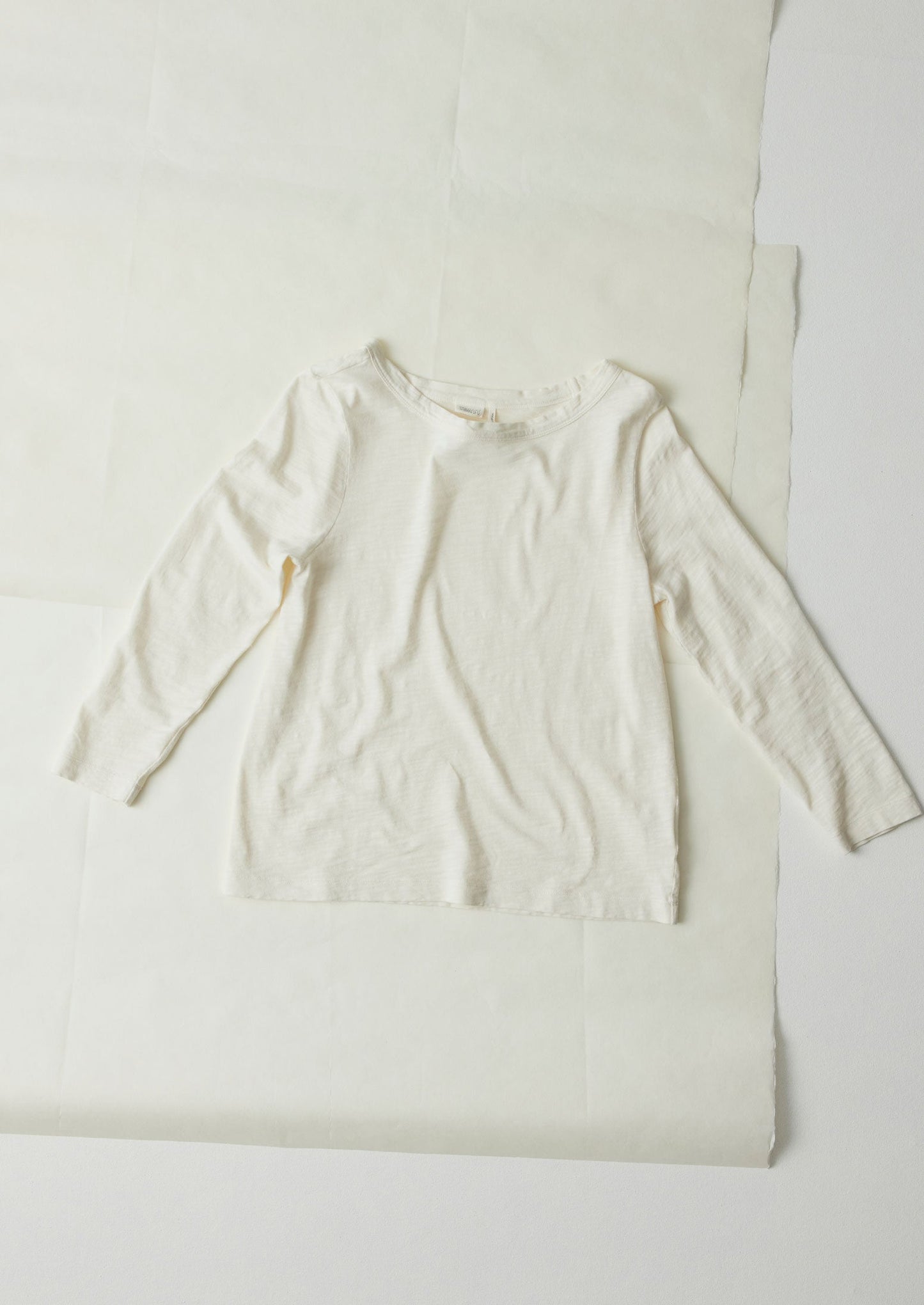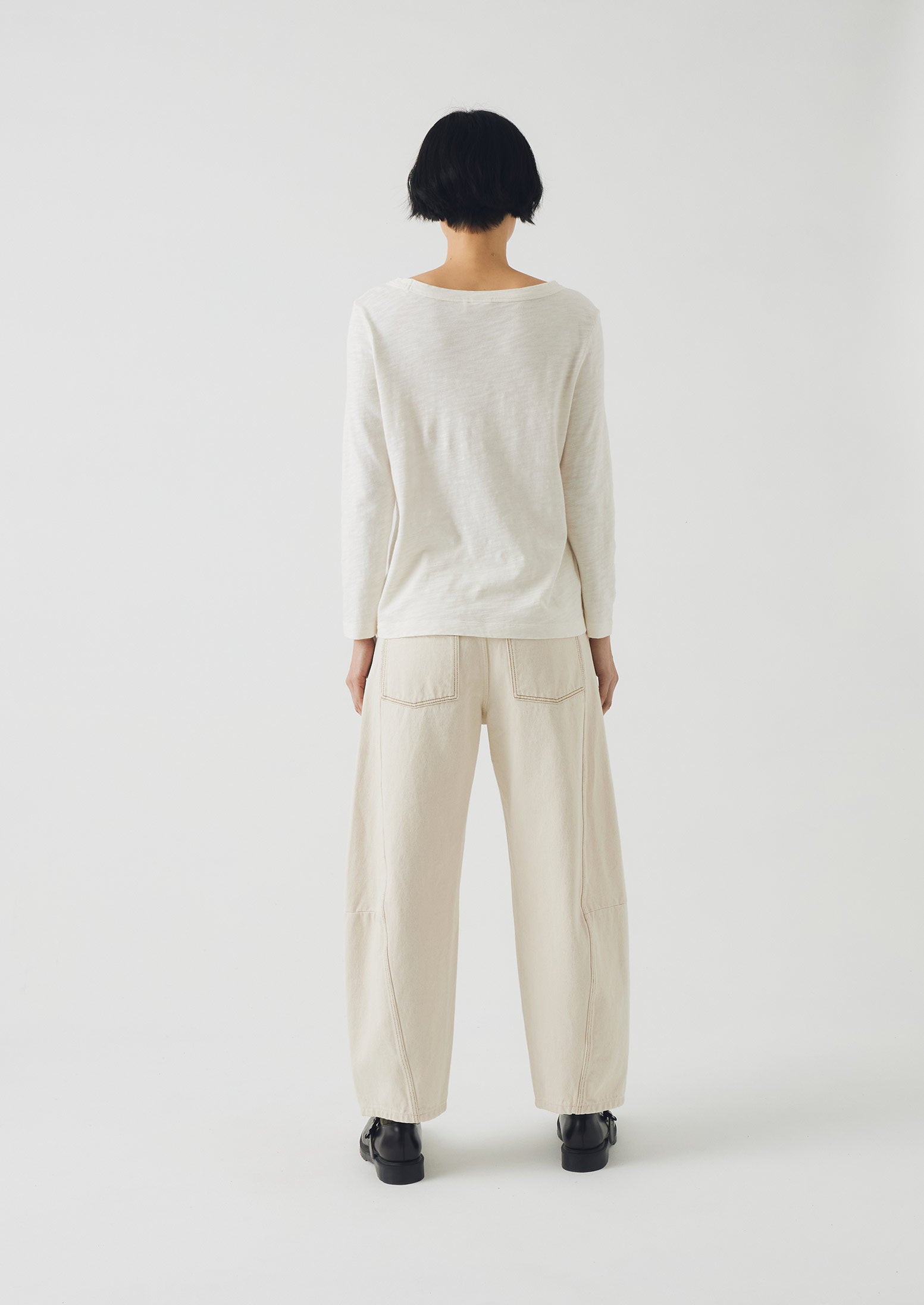 La nostra t-shirt è realizzata in jersey di cotone biologico con una texture slubbed in Portogallo. Presenta uno scollo a barca e maniche lunghe fino al polso, ed è poi tinta in capo per una ricca profondità di colore. La t-shirt è tinta in capo, un processo che conferisce a ogni capo una texture lavata e stropicciata e variazioni di colore naturali.