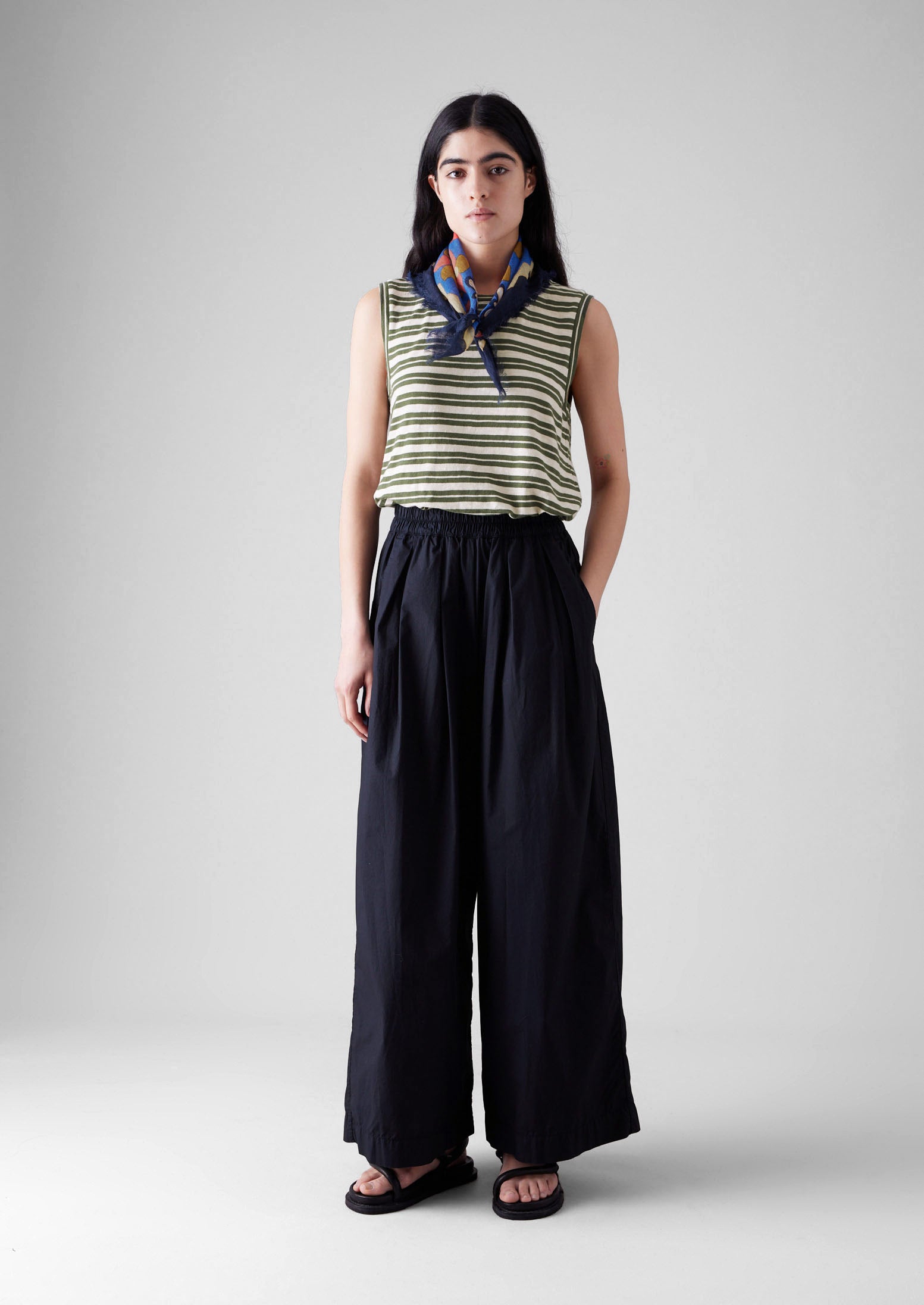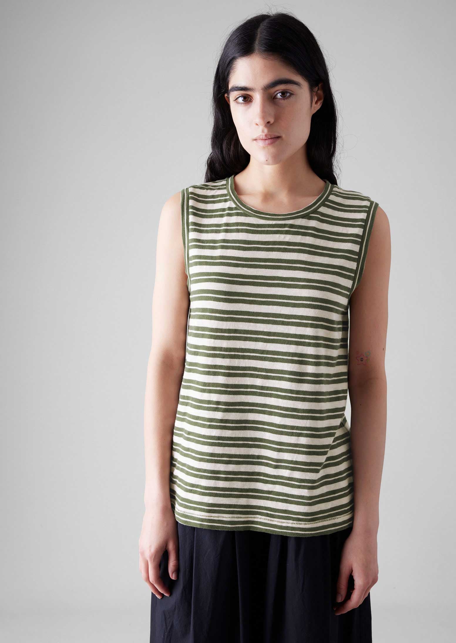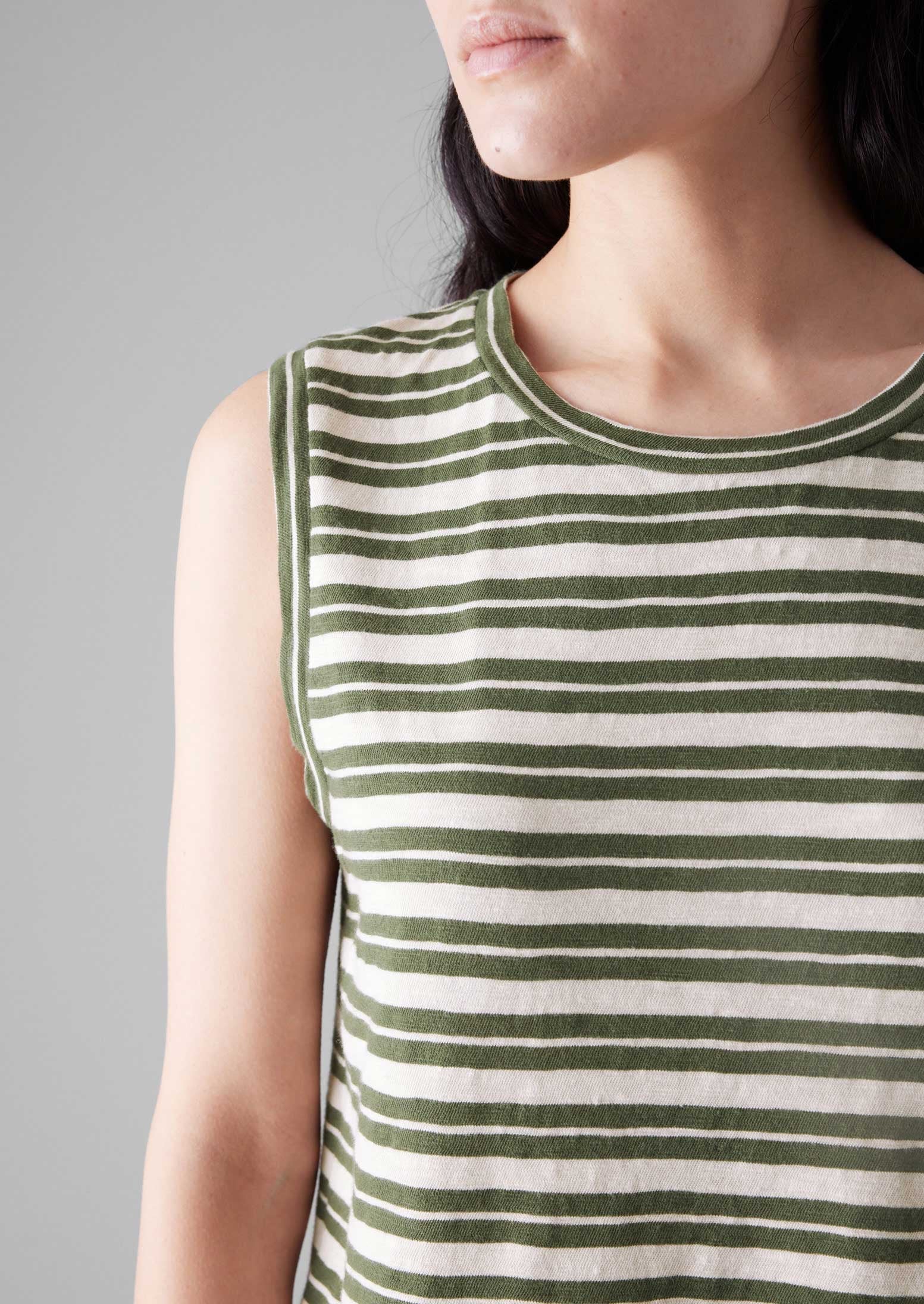Maglietta senza maniche a righe | Verde oliva...