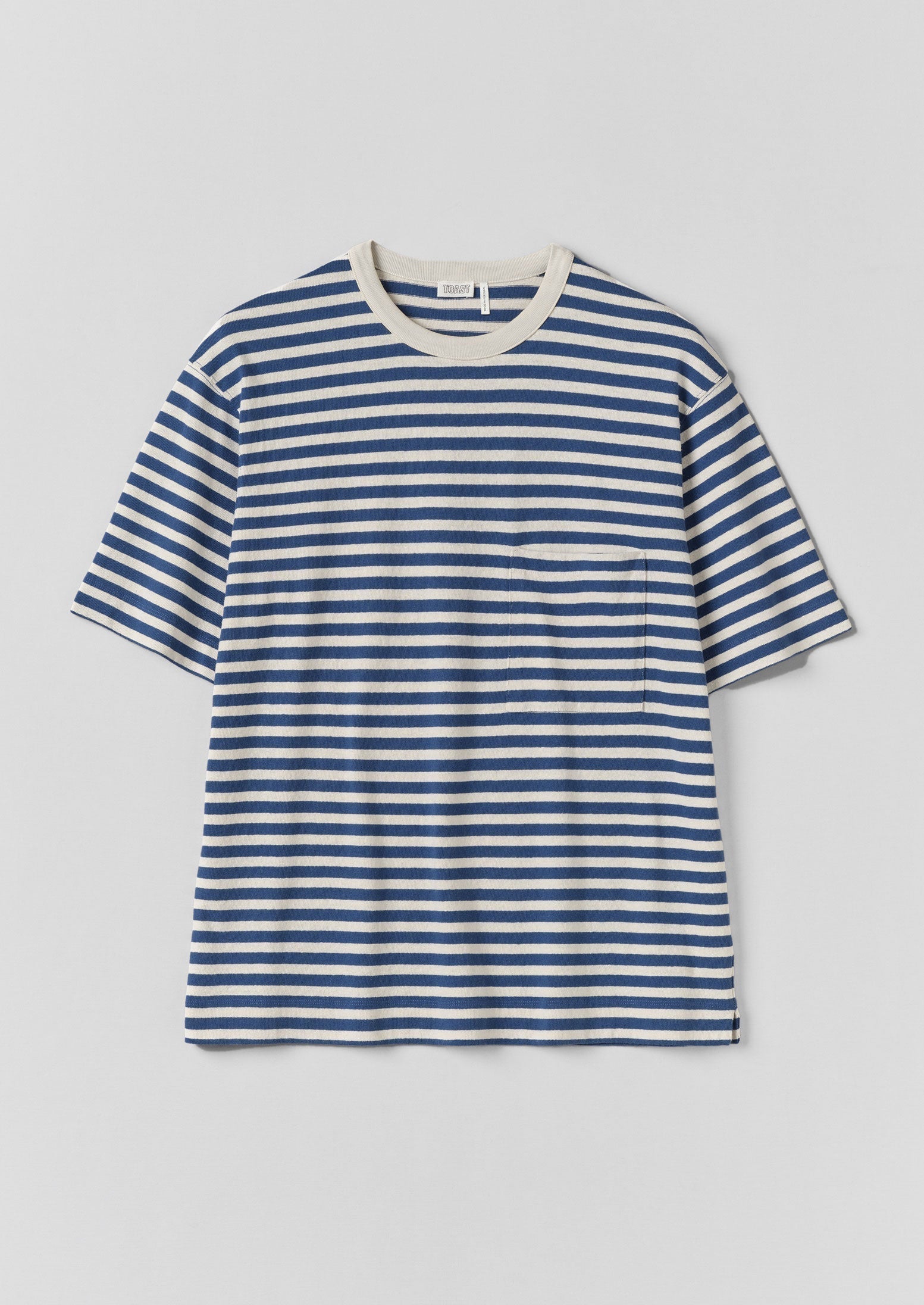 La nostra t-shirt squadrata in cotone biologico è realizzata in cotone di media pesantezza con una vistosa riga orizzontale. Rifinita con una tasca applicata sul petto. Parte della nostra collezione uomo. T-shirt in cotone biologico. Maniche corte. Riga orizzontale. Tasca applicata sul petto.