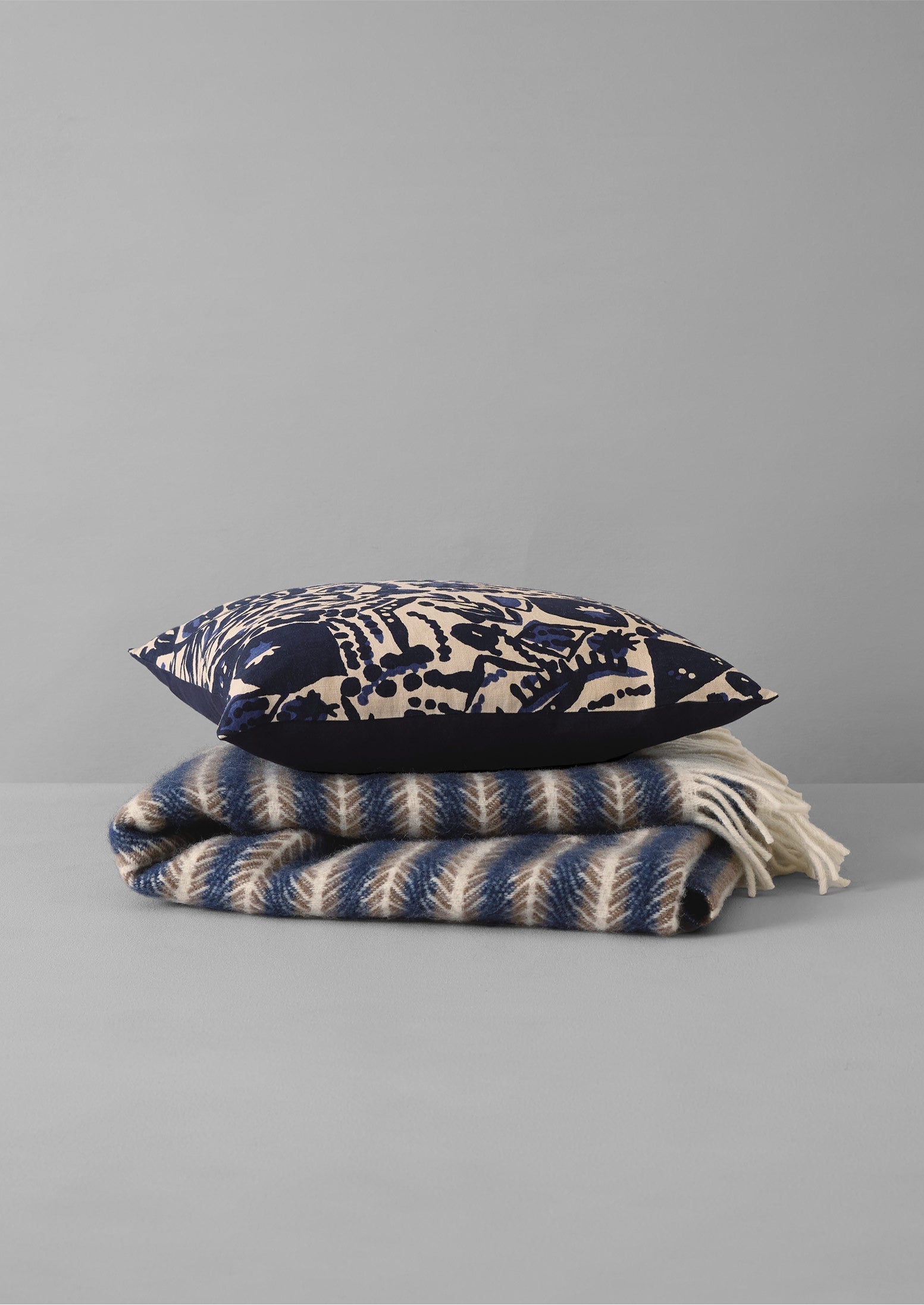 Coperta di lana Oscar | Blu/Sabbia