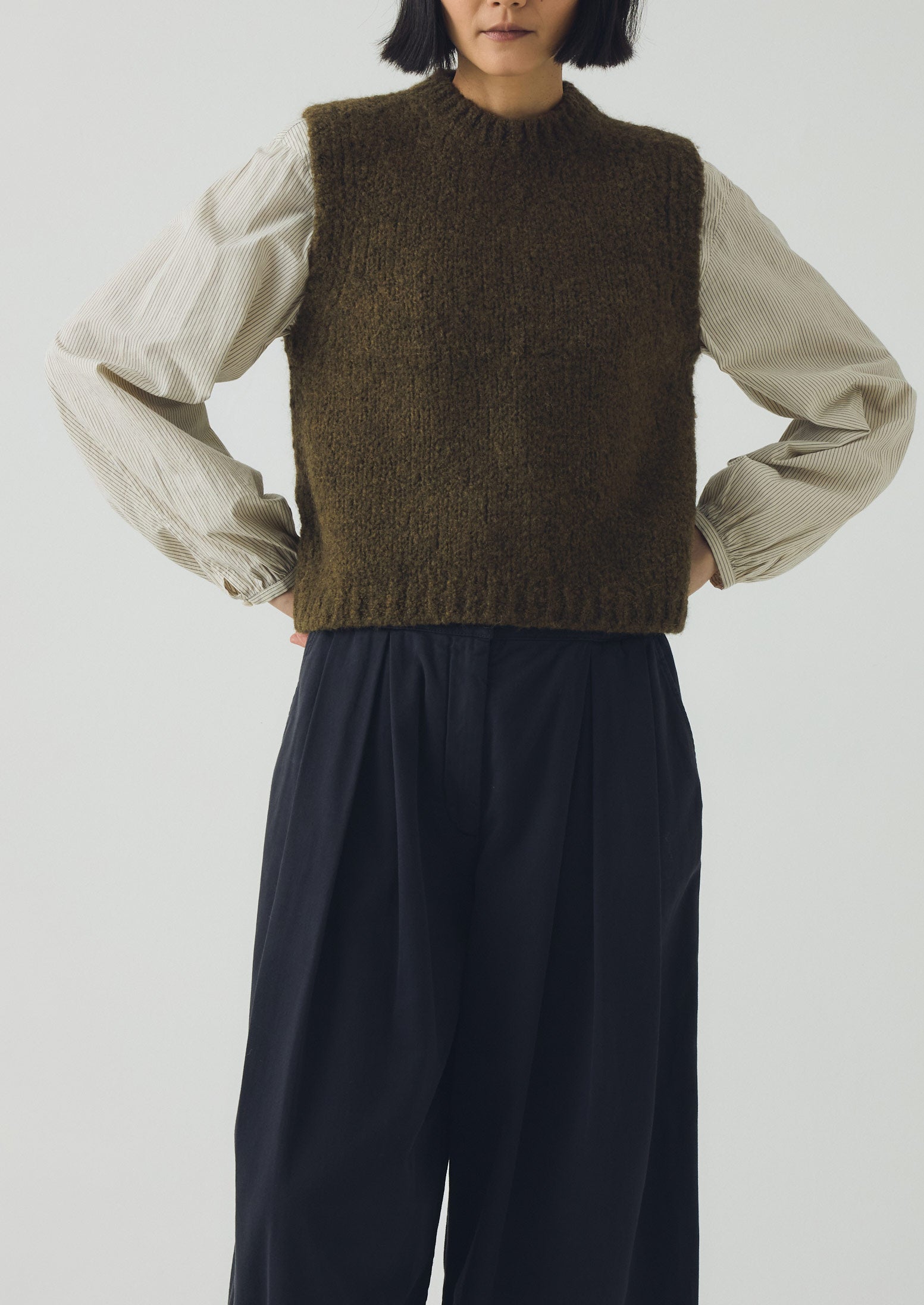 Canotta in lana e alpaca bouclé | Oliva intenso